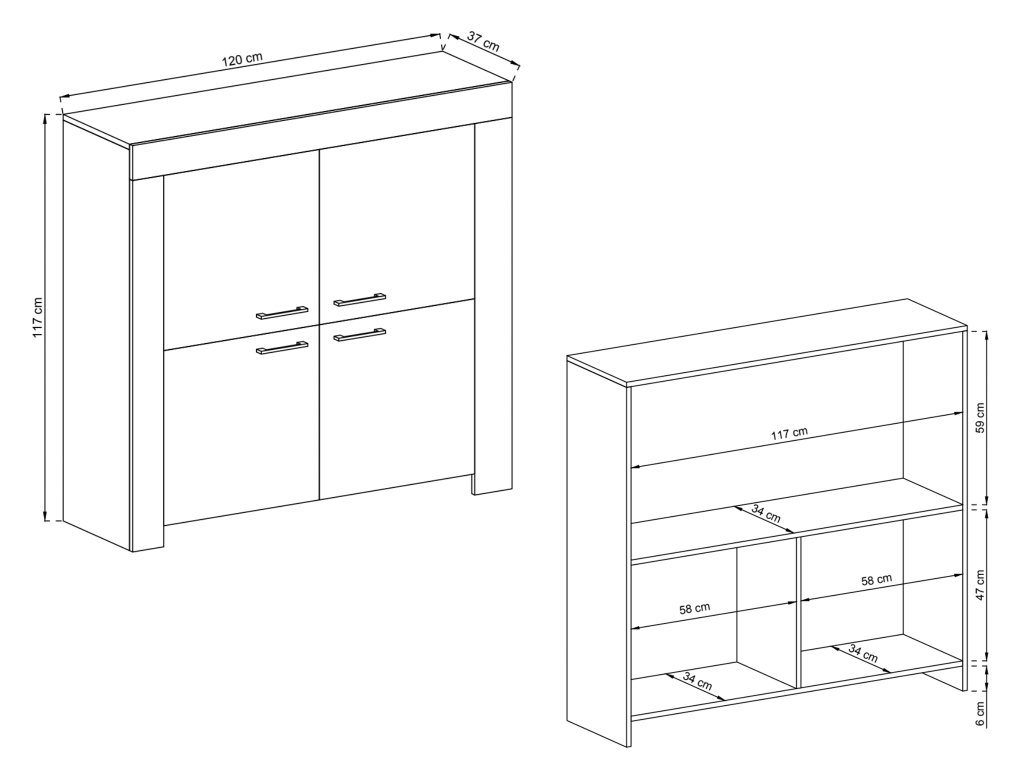 - Komoda Sky 120 skrýva tri police za štyrmi štýlovými dvierkami. Rozmery (šxvxd): 120 x 117 x 37 cm.