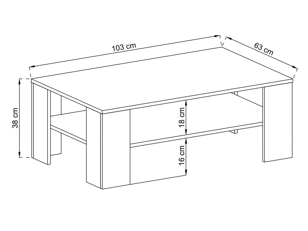 - Konferenčný stolík Sky s obdĺžnikovým tvarom a otvorenou policou na rôzne drobnosti je jasnou voľbou do obývačky. Rozmery (šxvxh): 103 x 38 x 63 cm.