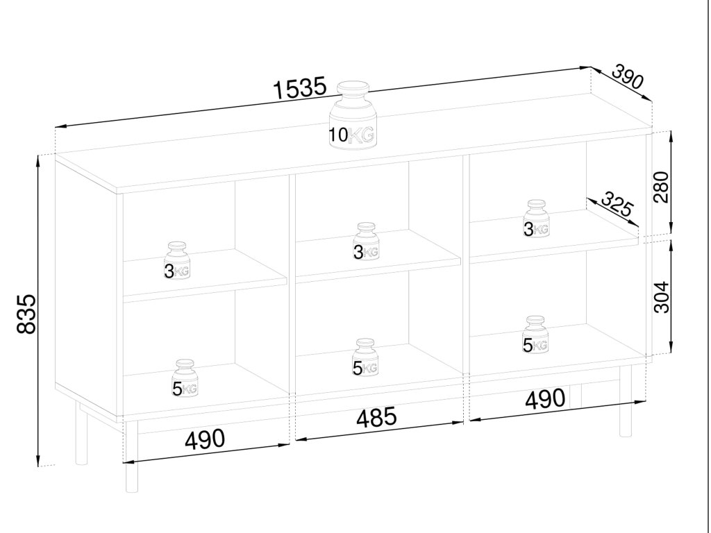 - Komoda K154: Disponuje dvierkami za ktorými sú tri praktické poličky. Rozmery (šxvxd): 153,4 x 83,5 x 39 cm
