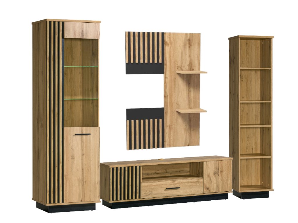 Lamely patria v súčasnosti medzi TOP interiérové prvky, ktorými ľudia zdobia svoje domovy. Či už si lamely predstavujete na stene, na dverách alebo na nábytku, rozhodne dodajú interiéru punc elegancie a jemný retro nádych. Najjednoduchším riešením, ako dostať lamely domov, je vybrať si obývaciu stenu alebo ďalší nábytok, ktorého súčasťou už sú. Okrem štyroch produktov, ktoré sú pevnou súčasťou tejto obývačkovej zostavy, máme v ponuke aj ďalšie kúsky z rovnakej kolekcie. Objednať si môžete skriňu, regály, rôzne komody, písací stôl, konferenčný stolík, ale aj rôzne nástenné police, či dokonca jedálenský stôl z kolekcie Lamelo. Obývačka, jedáleň, pracovňa aj spálňa tak môžu razom ožiť v súlade s jedným z najobľúbenejších trendov súčasnosti.