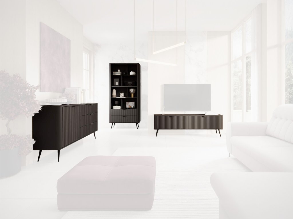 Vytvorte si doma atmosféru luxusu a praktickosti s elegantnou čiernou obyvačkovou stenou LANTE. Tento moderný nábytok kombinuje nadčasový dizajn s maximálnou funkčnosťou, čím vytvára ideálny priestor pre vaše každodenné potreby. Obývačková stena LANTE okamžite zaujme svojím drážkovaným čelom v elegantnej čiernej farbe a kovovými nohami. Zadná strana je vyrobená z béžovej HDF dosky. S čistým a minimalistickým vzhľadom sa dokonale hodí do každého interiéru. Táto obývačková stena ponúka množstvo úložného priestoru pre vaše knihy, dekorácie, elektroniku a ďalšie osobné veci. S poličkami, skrinkami a zásuvkami budete mať všetko usporiadané a na dosah ruky. Premeňte svoju obývačku na útulné a moderné miesto, kam sa budete radi vracať každý deň.