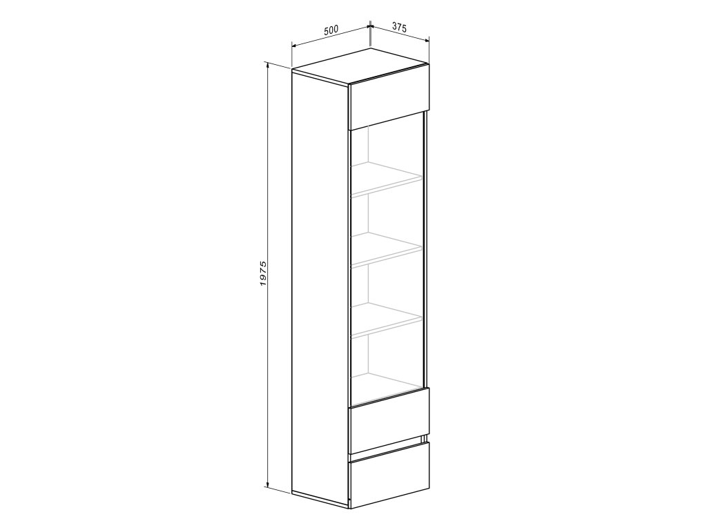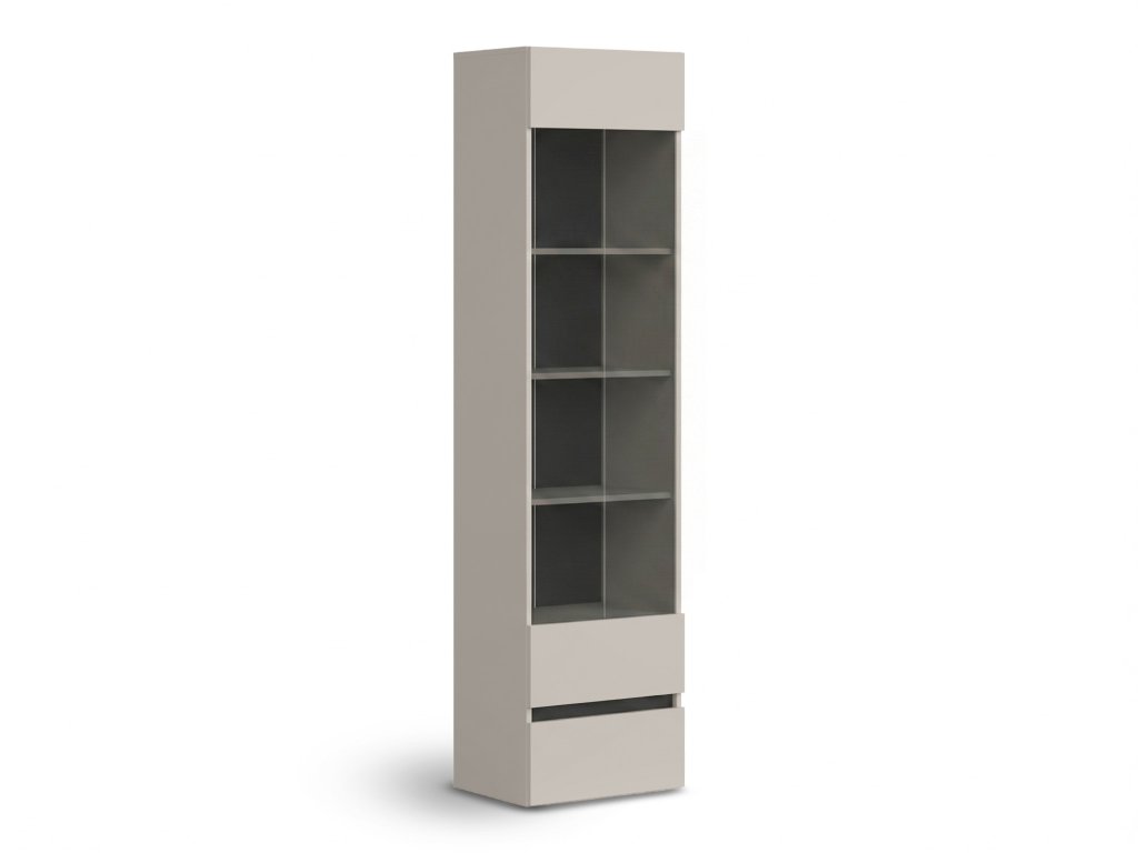 - Policový regál Londia: má presklenú hornú časť so štyrmi policami a menšiu spodnú zásuvku na drobnosti. Rozmer: 50 x 197,5 x 37,5 cm
