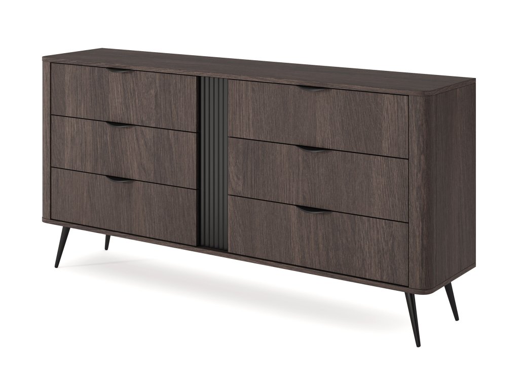 - Komoda 163 6S Veris: poskytuje šesť priestranných zásuviek, ideálnych na uloženie oblečenia, doplnkov alebo drobností. Jej nadčasový dekor dub dunin a kvalitné materiály zaručujú štýlový vzhľad a dlhú životnosť v každej obývačke alebo spálni. Rozmer: 163 x 81 x 38 cm