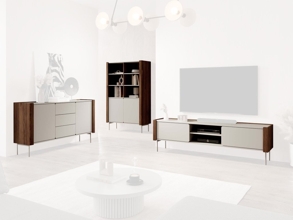 Predstavujeme vám kolekciu WRAP – moderný nábytkový systém navrhnutý pre obývačku, ktorý prináša kombináciu štýlu a funkčnosti. Táto kolekcia je vyrobená z 16 mm hrubej laminovanej dosky s hranami chránenými 0,5 mm ABS páskou pre vyššiu odolnosť a dlhú životnosť. Nábytok sa vyznačuje elegantným kašmírovým a orechovým dekorom, ktorý ladí s väčšinou interiérov a zároveň nikdy nevyjde z módy. Kolekcia Wrap obsahuje dve komody, TV stolík a vysoký regál, ktoré spoločne ponúkajú praktické a estetické riešenie úložného priestoru. Všetky prvky sú bezúchytkové, čo podčiarkuje ich čistý a moderný vzhľad. Otváranie je zabezpečené systémom push to open s tichým zatváraním, ktorý nielen prispieva k komfortu, ale aj chráni nábytok pred opotrebovaním. Kolekcia je navyše doplnená o vysoké kovové nožičky, ktoré dodávajú nábytku vzdušnosť a praktickosť – umožňujú jednoduché čistenie podlahy a vnášajú ľahkosť do menších priestorov. Kolekcia je ideálna pre tých, ktorí hľadajú spojenie moderného dizajnu, pohodlia a funkčnosti.