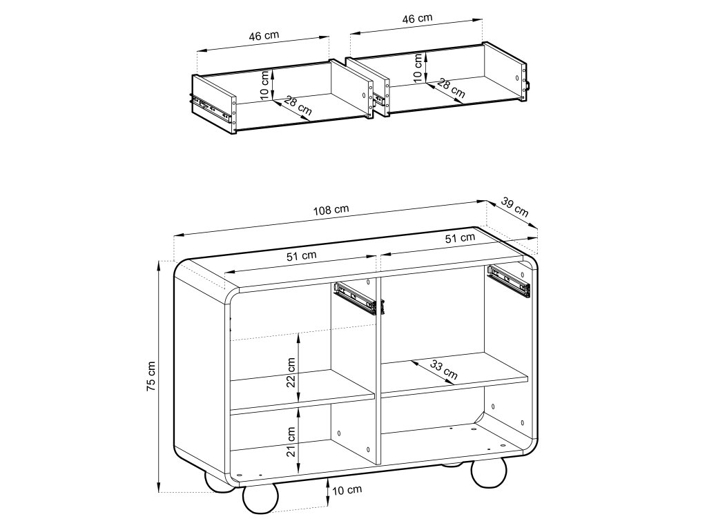 - Komoda Albion K108: spája moderný dizajn a praktický úložný priestor. Disponuje tradičnými zásuvkami aj policami za dvierkami, ideálnymi na oblečenie, doplnky či dekorácie. Rozmer: 108 x 75 x 39 cm