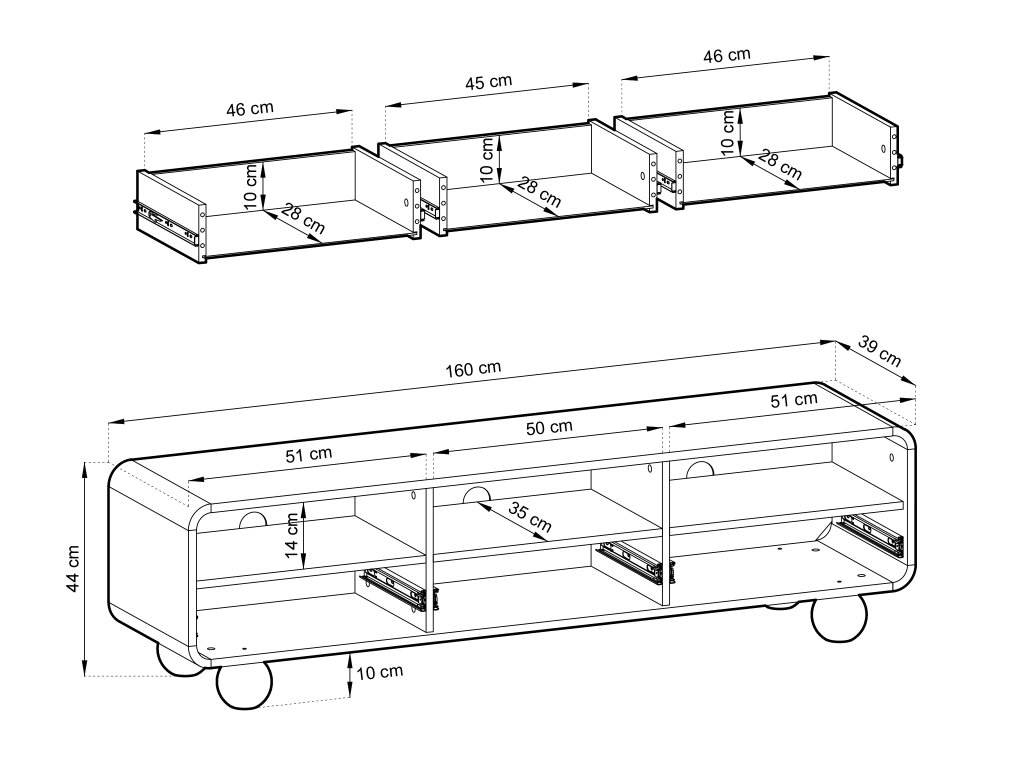 - TV stolík Albion 160: poskytuje miesto pre televízor, mediálne zariadenia a drobné dekorácie v zásuvkách alebo otvorených policiach. Kvalitné materiály a hladký povrch zaručujú odolnosť a jednoduchú údržbu, pričom stolík elegantne dopĺňa každý interiér. Rozmer: 160 x 44 x 39 cm