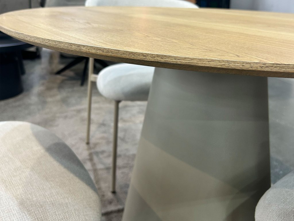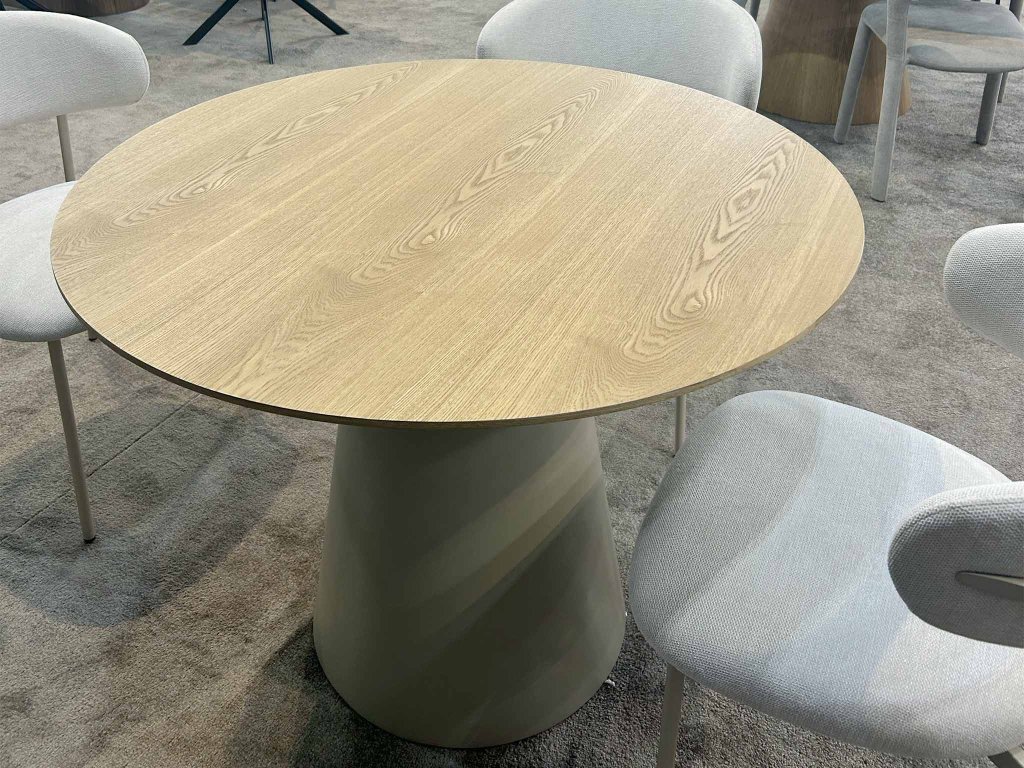 Kombinácia svetlého dreva a jemne tónovanej podnože v kašmírovej farbe robí zo stola Angel výrazný, no zároveň harmonický prvok každého interiéru. S priemerom 120 cm ponúka dostatok priestoru na pohodlné stolovanie pre rodinu aj hostí a vďaka svojmu okrúhlemu tvaru podporuje priateľskú atmosféru pri spoločných chvíľach.