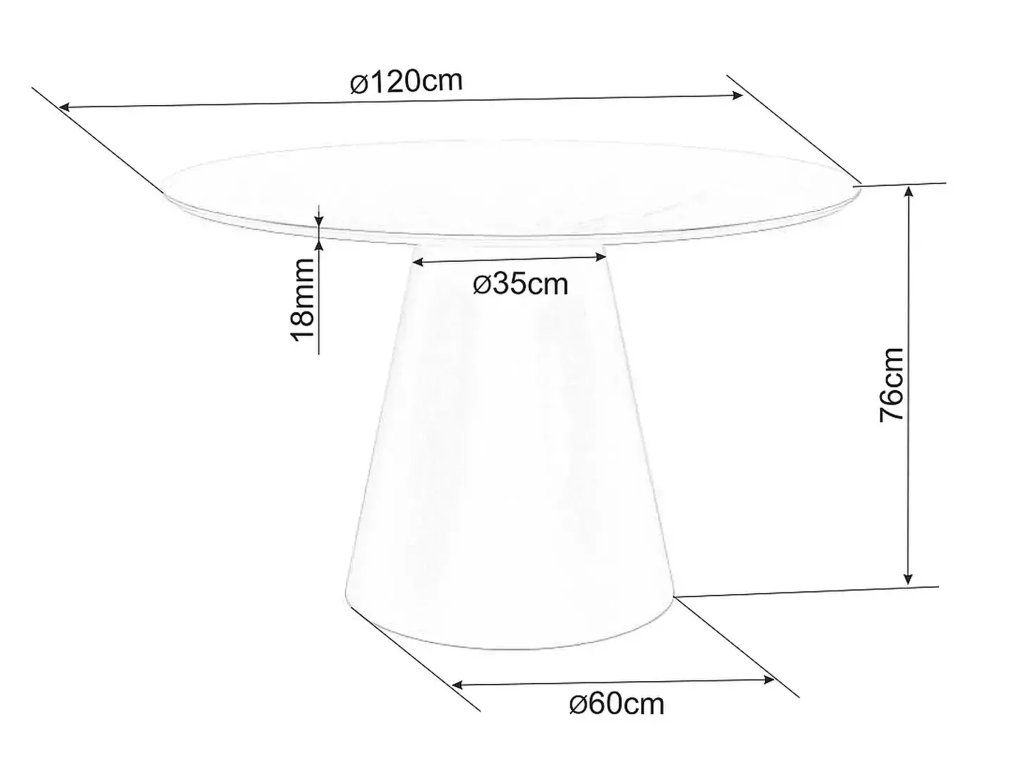 - Rozmery stola (šxvxh): 120 x 76 x 120 cm
