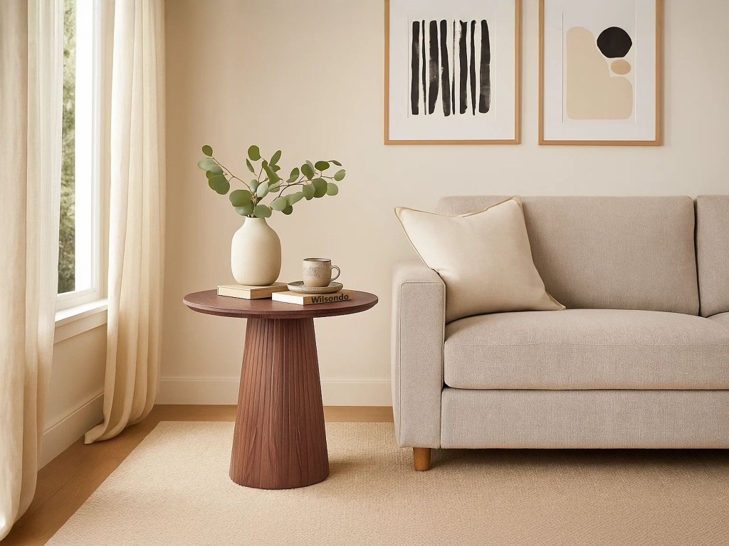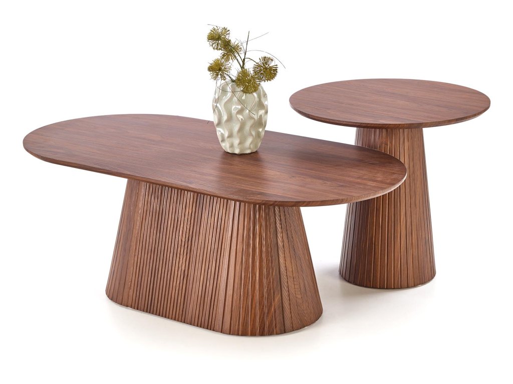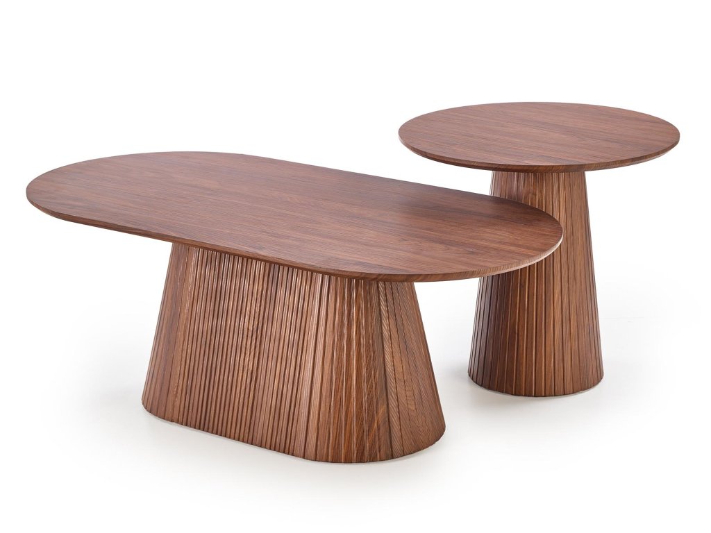 Konferenčný stolík Gisela S v odtieni orecha prináša do vášho interiéru spojenie klasiky a moderného štýlu. Jeho okrúhly vrch so zaoblenými hranami pôsobí ľahko a vzdušne, zatiaľ čo drážkovaná základňa vytvára harmonickú a elegantnú kompozíciu. Stolík je ideálny ako dekoratívny prvok do obývačky, ale aj ako praktický povrch pre knihy, kávu či obľúbené dekorácie. Nadčasová farebnosť orecha ľahko ladí s drevom, bielou alebo sivou farbou, čím sa stáva univerzálnym doplnkom moderných aj tradičných interiérov.
