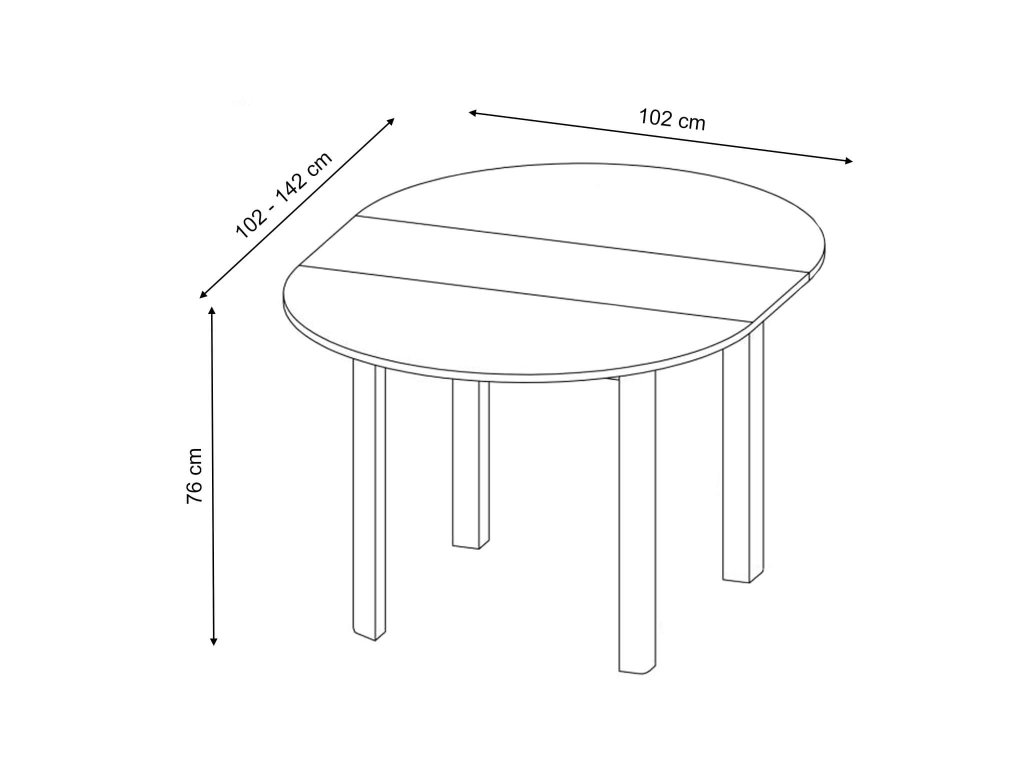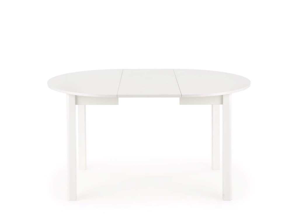 Moderný rozkladací stôl Ringo je okrúhly a skvelo bude vyzerať v modernom aj klasickom interiéri. Jednoduchý nenáročný stôl má vrchnú dosku vyrobenú z bielej dyhovanej nábytkovej dosky. Z malého kusu nábytku sa po rozložení stane plnohodnotný stôl až pre 6 osôb. Biely stôl je ideálny pre rodinné stretnutia. Pevné nohy sú z dyhovanej MDF v bielej farbe. Univerzálny jedálenský stôl ľahko zladíte s ostatnými kúskami nábytku. Ideálne riešenie pre kuchyňu, jedáleň ale aj do reštaurácií. Má univerzálny vzhľad a tak jednoducho k nemu doladíte stoličky a ostatné dekorácie.