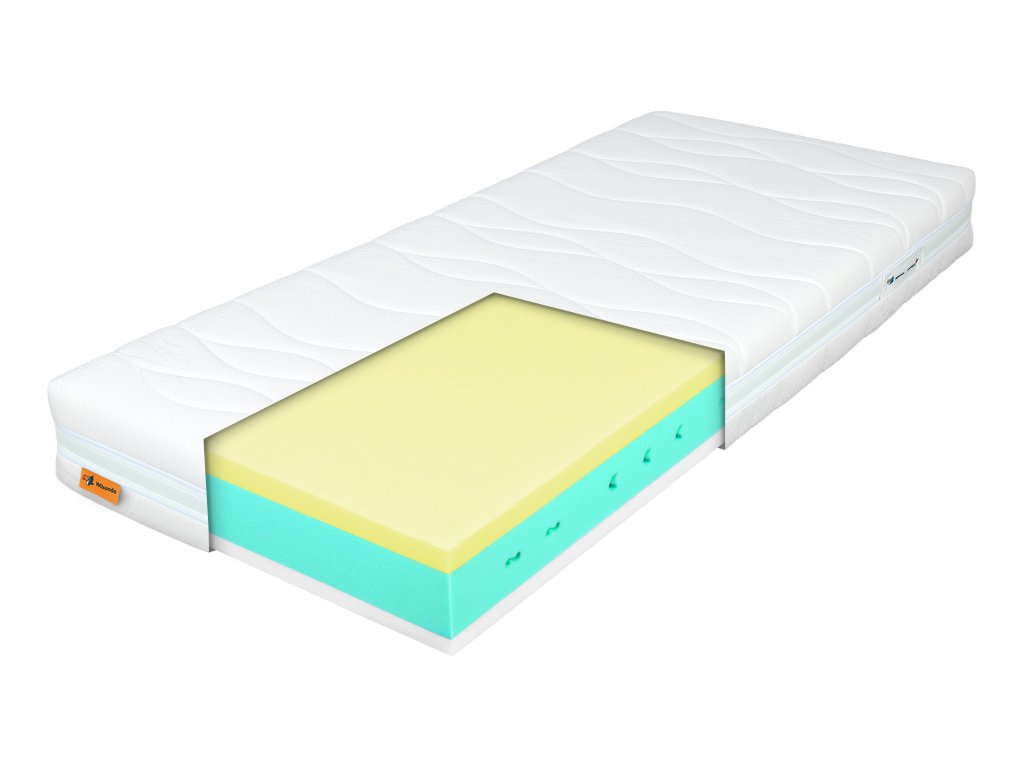 Materiálové zloženie: Pamäťová pena VISCO, PUR pena T35, HR pena H30, poťah
