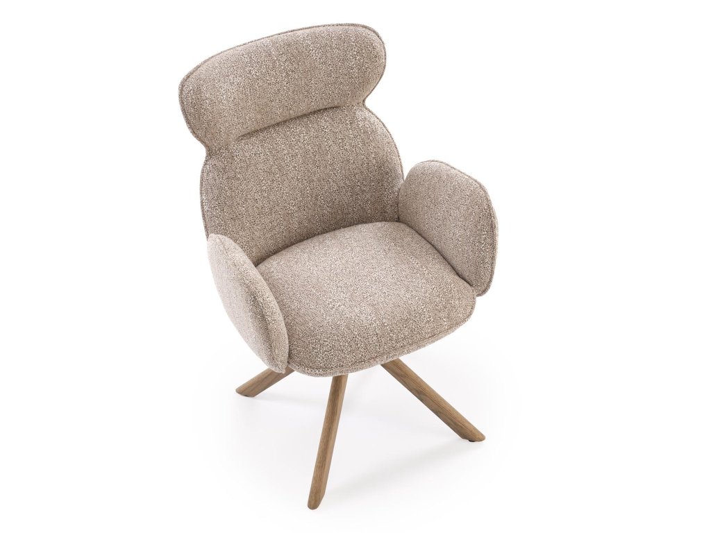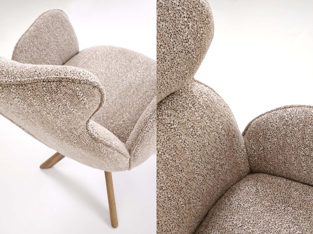 Carla K585 je otočné kreslo, ktoré si získa pozornosť na prvý pohľad – elegantnými tvarmi, hrejivou béžovou látkou a drevenými nohami vo farbe orecha. Jeho dizajn je moderný, no s jemným retro nádychom, vďaka čomu zapadne do rôznych štýlov zariadenia – od prírodného škandinávskeho až po nadčasový vintage.