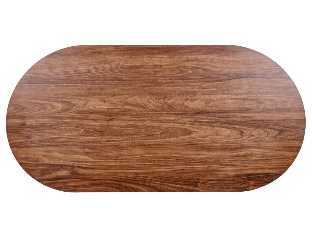 Konferenčný stolík Gisela zaujme už na prvý pohľad svojím moderným dizajnom a elegantným orechovým odtieňom, ktorý vnáša do interiéru hrejivú atmosféru. Oválna doska stola je vyrobená z kvalitnej dyhovanej MDF dosky – materiálu, ktorý spája atraktívny vzhľad s praktickými vlastnosťami, ako je odolnosť voči bežnému opotrebovaniu a jednoduchá údržba. Jemná kresba dreva v orechovom dekore navyše pôsobí prirodzene a nadčasovo.