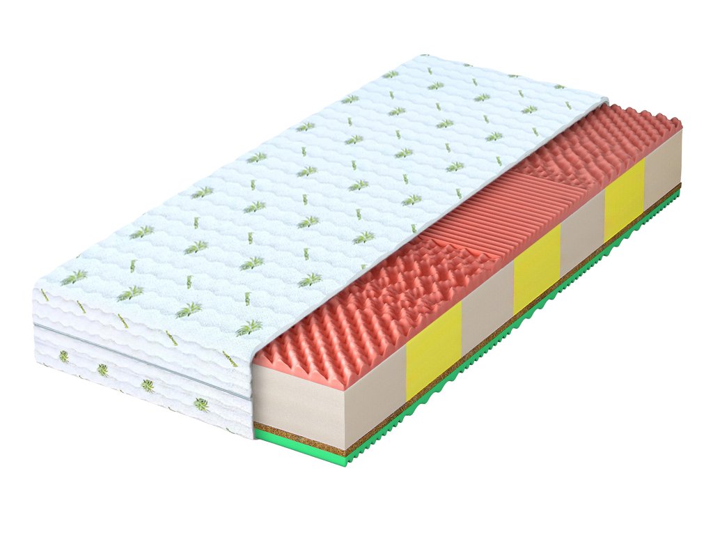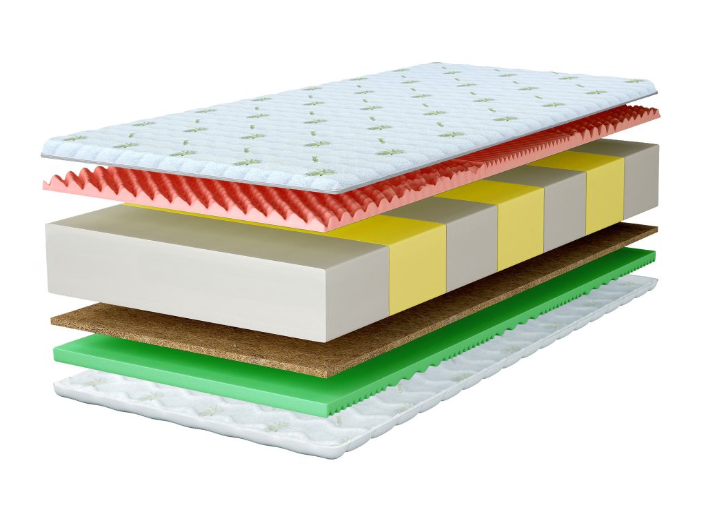 Materiálové zloženie: profilovaná polyuretánová pena T28, polyuretánová pena T25, kokosová vrstva, profilovaná polyuretánová pena T25, prešívaný poťah Aloe Vera