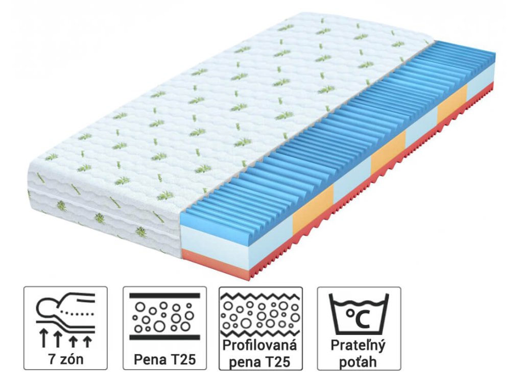 Profilovaná 7-zónová vysokokvalitná pena zabezpečuje zlepšenie prekrvenia pokožky a uvoľnenia svalstva počas spánku. Vplyvom teploty tela sa prispôsobuje jeho tvaru a zvyšuje tak pocit dobrého spánku. Vďaka systému 7 zón tvrdosti poskytuje chrbtici i celému telu prirodzenú polohu a podporu. Táto pena je vhodná aj pre alergikov.
