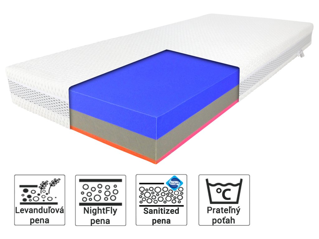 Materiálové zloženie: Levanduľová pena, NightFly pena, Sanitized pena, Poťah