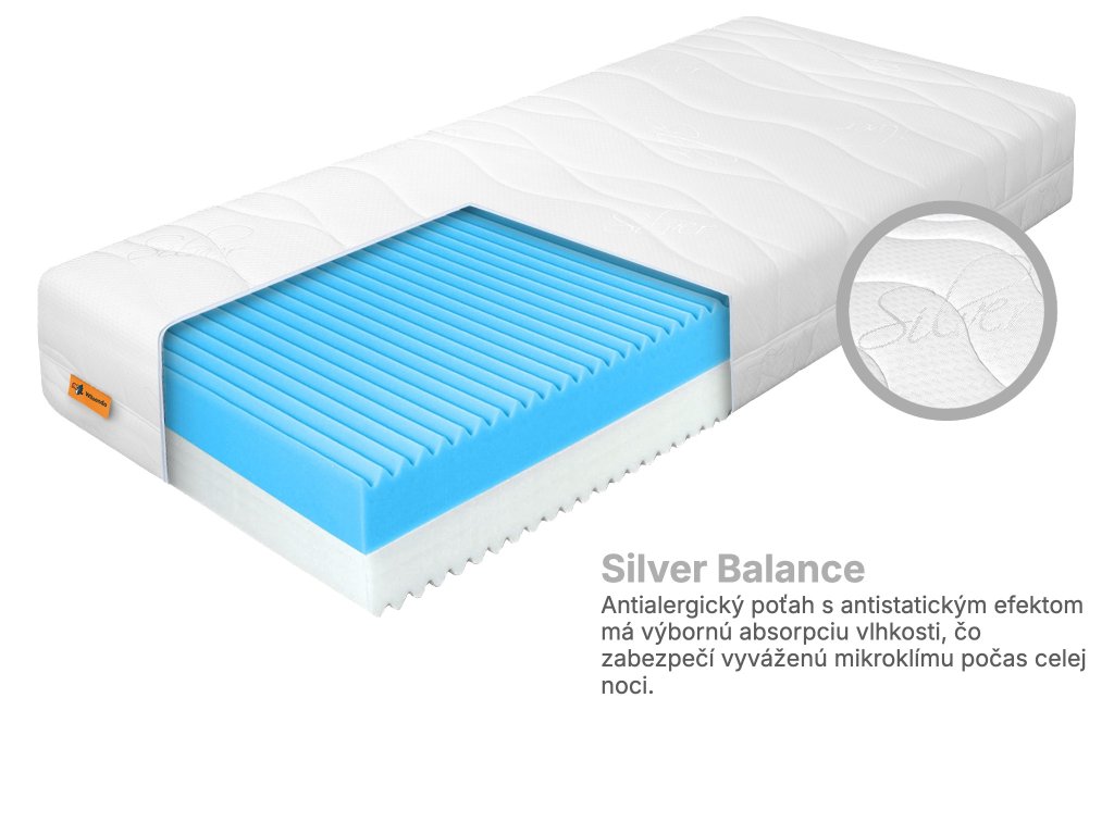 Materiálové zloženie: Polyuretánová PUR pena T25, Polyuretánová PUR pena T28, Poťah Silver