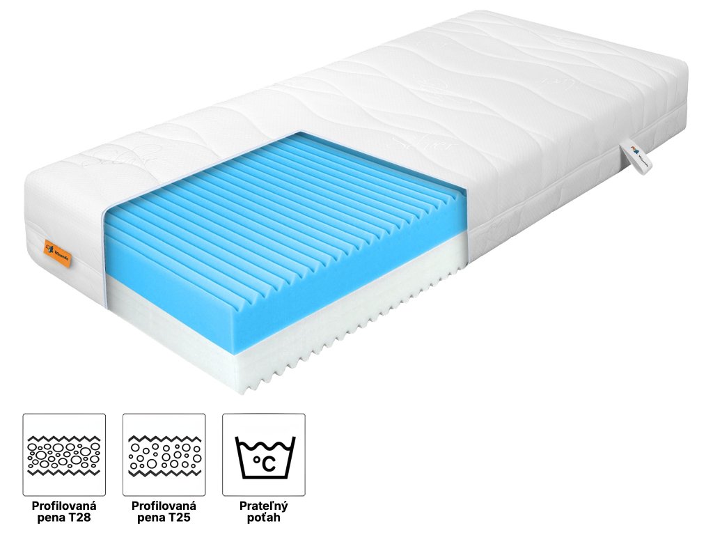 Profilovaná 7-zónová vysokokvalitná pena zabezpečuje zlepšenie prekrvenia pokožky a uvoľnenia svalstva počas spánku. Vplyvom teploty tela sa prispôsobuje jeho tvaru a zvyšuje tak pocit dobrého spánku. Vďaka systému 7 zón tvrdosti poskytuje chrbtici i celému telu prirodzenú polohu a podporu. Táto pena je vhodná aj pre alergikov.