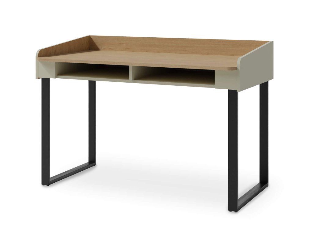 Oživte svoj domov alebo pracovisko praktickým a funkčným písacím stolom ALESSIO AE10 v zaujímavej zelenej farbe. Stolová doska je v štýlovom prevedení baltického duba, ktorý skvele ladí so zvyškom konštrukcie. Čiernymi nohami v osobitom dizajne je krásne doplnené farebné spektrum stola. Tento nábytok sa vyznačuje dlhou životnosťou a spoľahlivosťou vďaka svojej pevnej konštrukcii. S moderným vzhľadom a precíznym spracovaním sa skvele hodí do nejedného pracovného prostredia. Dve otvorené priehradky pod pracovnou doskou sú ideálne na uloženie kníh, zošitov a iných vecí, ktoré nechcete mať priamo na stole. Navyše, ohraničená hlavná pracovná plocha zabraňuje náhodnému zosunutiu predmetov zo stola.