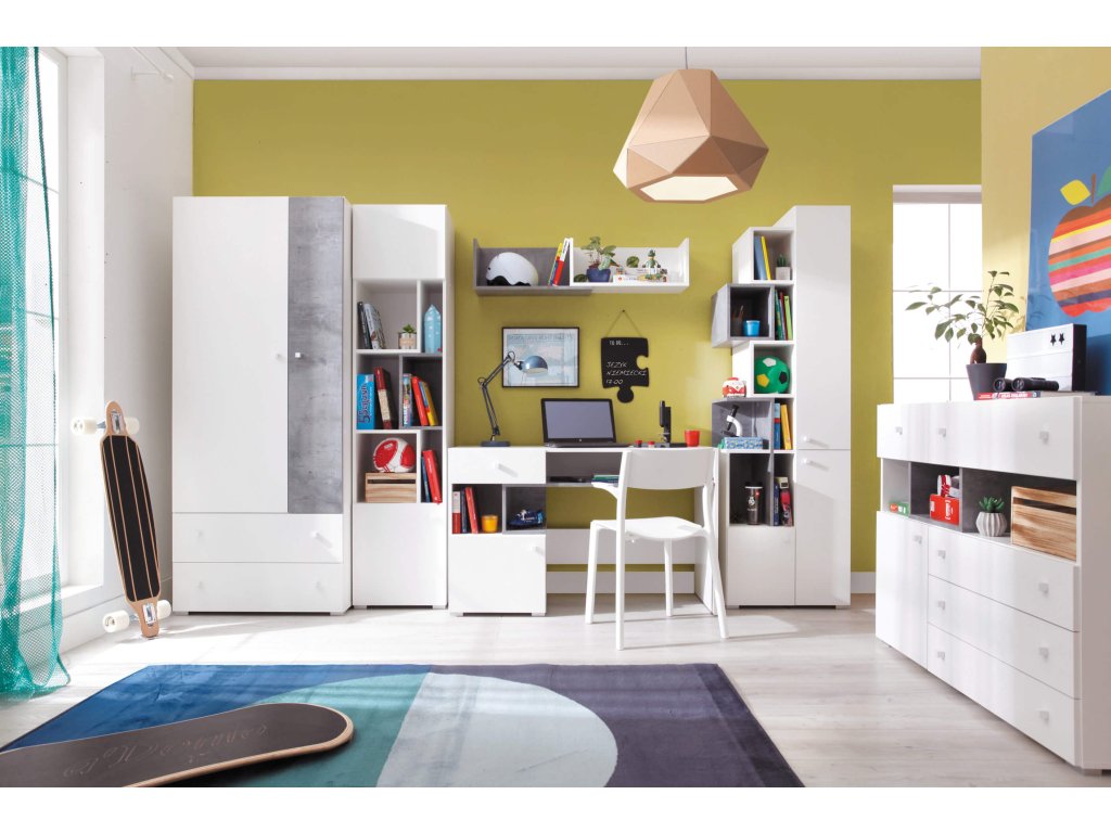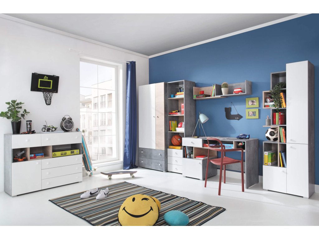Sektorový nábytok do detskej alebo študentskej izby Fabio. Ak plánujete vytvoriť pre svoje dieťa nádherné miesto na učenie, ako aj miesto s mnohými zákutiami, priehradkami a zásuvkami, kolekciu Fabio si obľúbite. Poskytuje množstvo priestoru na uloženie oblečenia, hračiek ale aj kníh. Nábytok je vyrobený z kvalitnej 16 mm laminovanej dosky. Hrany sú zakončené ABS páskou, ktorá je odolnejšia proti každodennému používaniu.