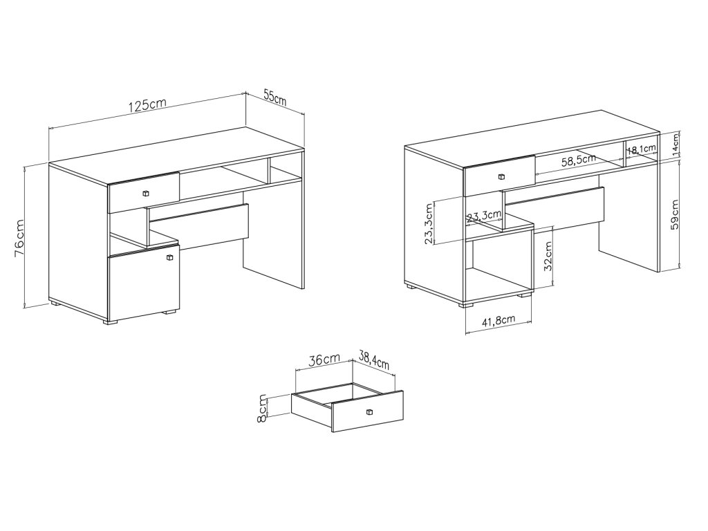 Písací stôl - kus nábytku, ktorý nesmie chýbať v žiadne detskej či študentskej izbe. Písací stôl Fabio disponuje zásuvkou, skrinkou a niekoľkými policami. Vďaka jednoduchému dizajnu bude slúžiť Vašim deťom dlhé roky.