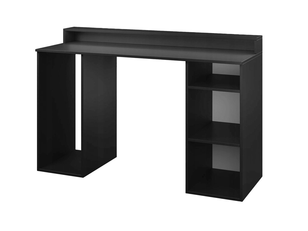 Herný stôl v čiernej farbe vhodný do detskej izby či kancelárie. Súčasťou stola je aj polička, na ktorú je vhodné uložiť jeden či dva monitory. Počítačový stôl je určený aj pre hráčov počítačových hier, pre deti na písanie domácich úloh či pre zamestnancov, ktorí pracujú z domu. Herný stôl zvyšuje nielen komfort používania, ale zaujme aj svojim dizajnom, ktorý doplní vzhľad mnohých interiérov. Korpus je vyrobený z laminátovej dosky v hrúbke 16 mm a okraje stola si prešli povrchovou úpravou. Sú odolné proti poškodeniu s 0,5 mm PVC dyhou. Súčasťou stola je skrinka na počítač a tri poličky, do ktorých je možné odložiť kancelárske potreby, knihy či školskú tašku.