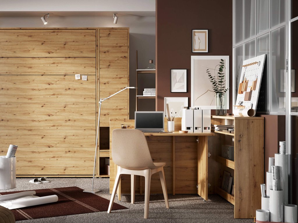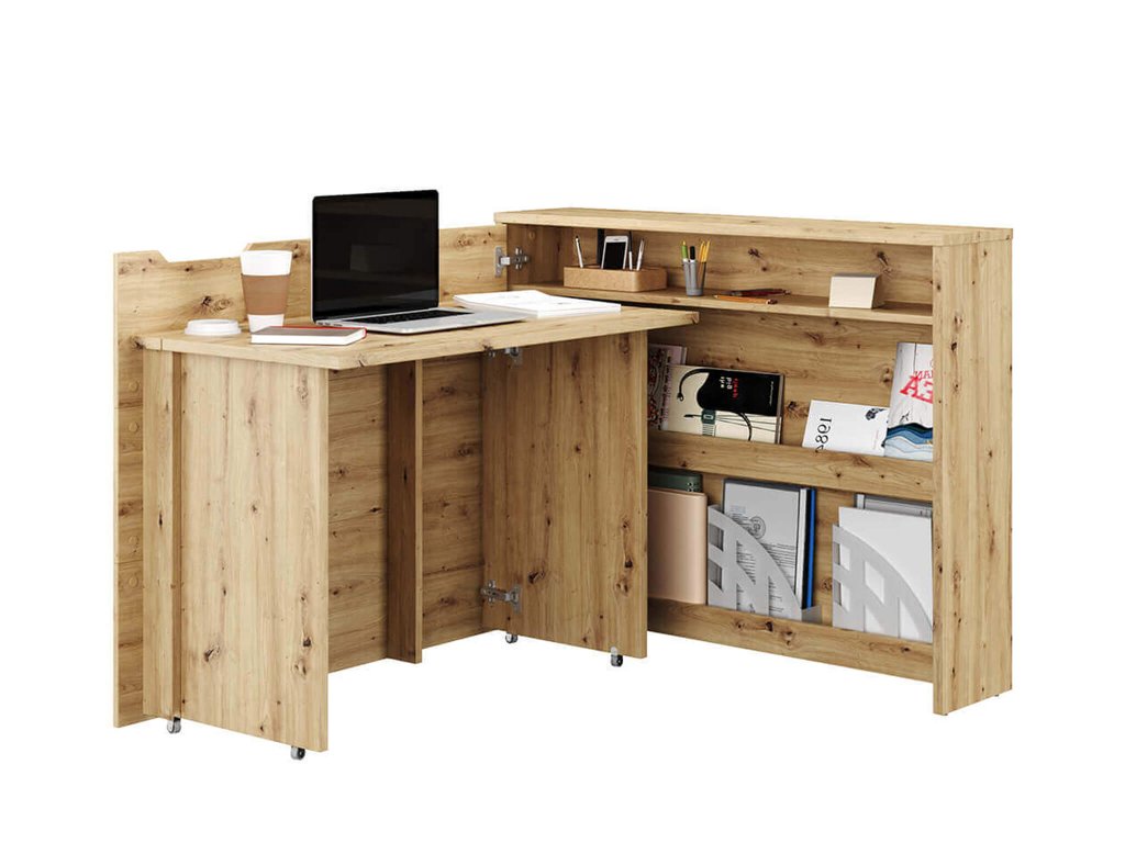 Minimalistický pracovný stôl WORK CONCEPT s možnosťou rozloženia si nájde využitie v garsónkach, menších bytoch či hosťovskej izbe, ktorú prechodne využívate aj ako domácu pracovňu. Na prvý pohľad úzka komoda sa jednoduchým potiahnutím zmení na priestranný pracovný stolík s policami na odkladanie dokumentov, zakladačov a písacích potrieb. Každý si niekedy potrebuje vybaviť zopár emailov, napísať list či vyplniť dôležité dokumenty. K písaciemu stolu si stačí vybrať už len pohodlnú kancelársku stoličku alebo si prisunúť jedálenskú stoličku a funkčné pracovné miesto je na svete.