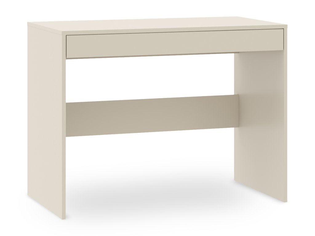 Hľadáte ideálny písací stôl pre vášho študenta alebo študentku? Detský písací stôl z kolekcie Lens v elegantnom kašmírovom odtieni je presne to, čo potrebujete na vytvorenie usporiadaného pracovného priestoru v detskej izbe. Stôl je vyrobený z kvalitnej 16 mm laminovanej drevotriesky, ktorá zaručuje nielen dlhú životnosť, ale aj jednoduchú údržbu. Všetky viditeľné hrany sú starostlivo chránené ABS okrajom. Zadná strana stola je bez okraja. Vybavený jednou priestrannou zásuvkou s plynulými guľôčkovými výsuvmi. Do nej ľahko uložíte všetky kancelárske potreby, dokumenty alebo osobné veci. Charakteristickým prvkom dizajnu je bezúchytkové otváranie a to jednoduchým uchopením za prednú stranu. Stabilné plastové nožičky s čiernymi klzákmi zabezpečujú pevné postavenie stola a zároveň chránia vašu podlahu pred poškriabaním.