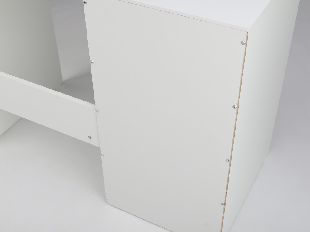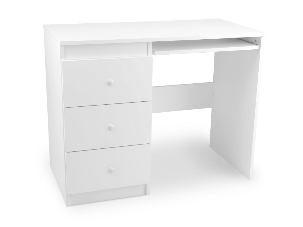 Objavte dokonalý biely písací stôl Leo L1, ktorý prinesie eleganciu a funkčnosť do vášho domova či kancelárie. Ak hľadáte spoľahlivý a štýlový doplnok pre váš pracovný priestor, tento stôl je pre vás ideálnou voľbou. Jeho čistý, moderný dizajn s bielymi úchytkami sa skvele hodí do každého interiéru, pričom poskytuje dostatok priestoru na prácu a organizáciu. Tento stôl je nielen štýlový, ale aj praktický – s pevnou konštrukciou a vysokokvalitnými materiálmi je pripravený zvládnuť aj tie najnáročnejšie pracovné dni. Neutrálna biela drevotriesková doska KRONO spája eleganciu s odolnosť. Pracovný stôl je vybavený bielou PVC páskou HRANIPEX, čo mu dodáva dokonalý finálny vzhľad. S tromi zásuvkami a jednou výsuvnou písacou doskou získavate dostatok úložného priestoru na usporiadanie vašich pracovných potrieb. Písací stôl Leo L1 vám umožňuje sústrediť sa na to, čo je pre vás dôležité, a prináša vám pokojné a produktívne pracovné prostredie.
