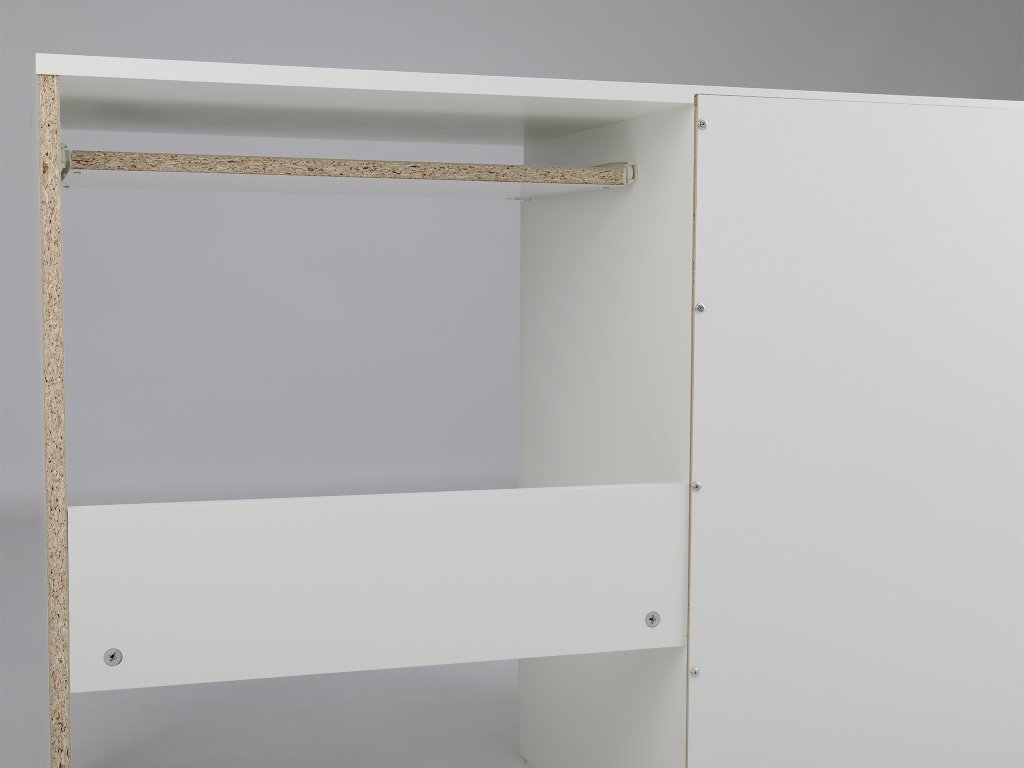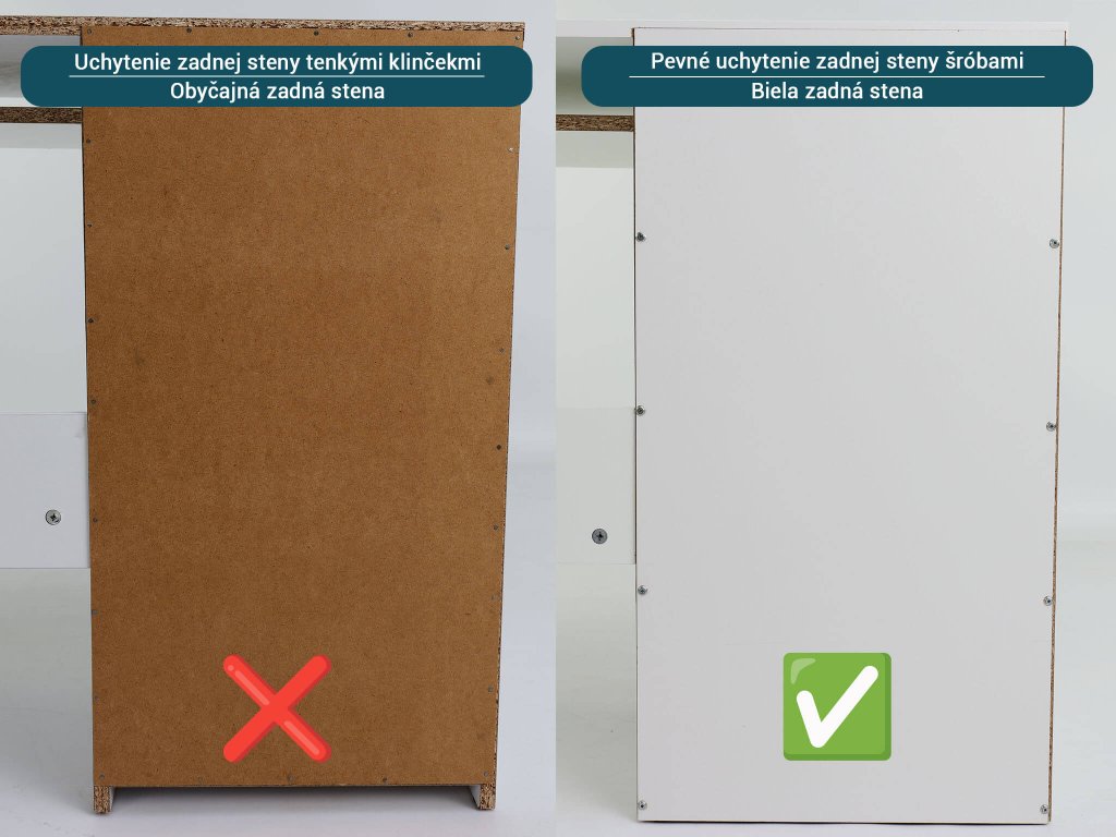 - Materiál: drevotriesková doska KRONO, hrany PVC, kovové koľajničky