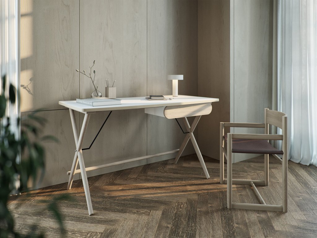 Elegantný písací stôl v bielej farbe je ideálnou voľbou do kancelárie, pracovne alebo študentskej izby. Jeho minimalistický dizajn a čisté línie zaručia, že skvele zapadne do každého moderného interiéru. Stôl ponúka nielen veľkorysú pracovnú plochu, ale aj praktickú zásuvku, ktorá poskytuje priestor na uloženie kancelárskych potrieb, zošitov alebo iných drobností. Pevné dubové nohy pridávajú na stabilite a zároveň vnášajú do miestnosti nádych prírodného šarmu. Tento písací stôl je navrhnutý tak, aby skĺbil praktickosť s estetikou, čím vytvára ideálne miesto na sústredenú prácu alebo učenie.