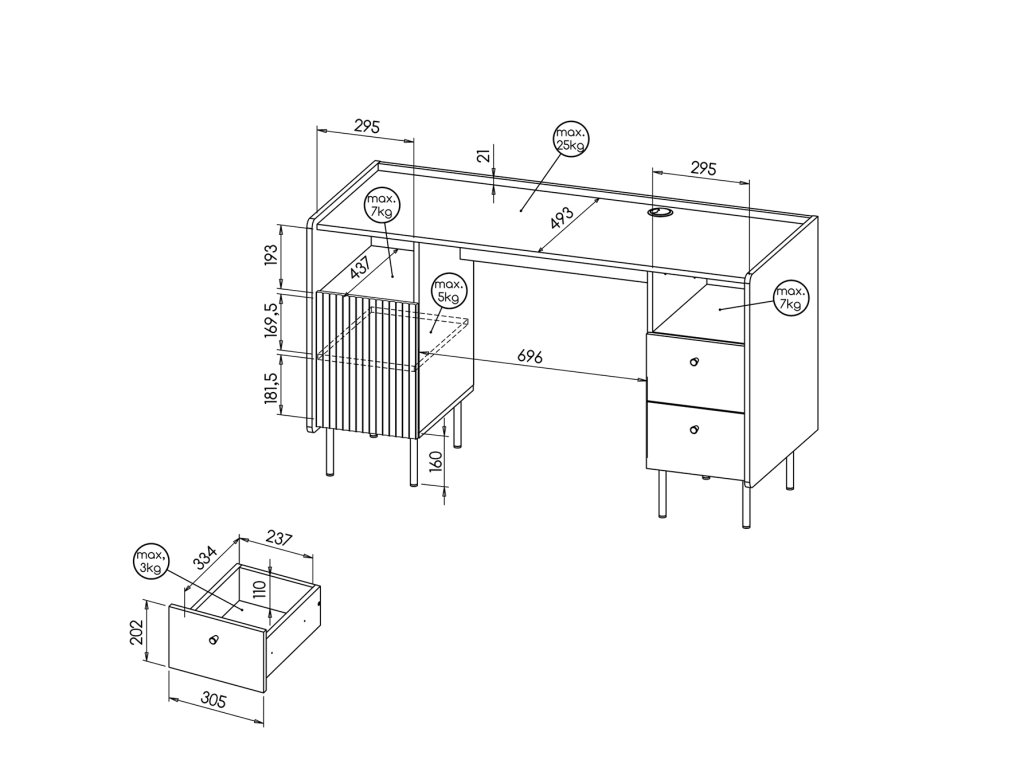 Písací stôl Prestigo P9 je vyrobený v modernom a jednoduchom štýle, ktorý zaujme svojou jedinečnosťou. Orech Warmia, San Sebastian a čierna matná, ako farby stola spolu perfektne sedia a dodajú vašej pracovni úžasný vzhľad. Písací stôl má jednu zatvárateľnú skrinku s dvomi policami, vhodnú na uskladnenie vašich dokumentov. Na druhej strane nájdete dve šikovné zásuvky, do ktorých jednoducho schováte drobnosti. Hore, po oboch stranách sa ešte nachádzajú ďalšie dve otvorené police pridávajúce viac úložného priestoru. Nábytok stojí na pevných kovových nožičkách s dĺžkou 16 cm, ktoré poskytujú stolu stabilitu.