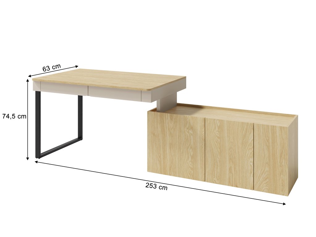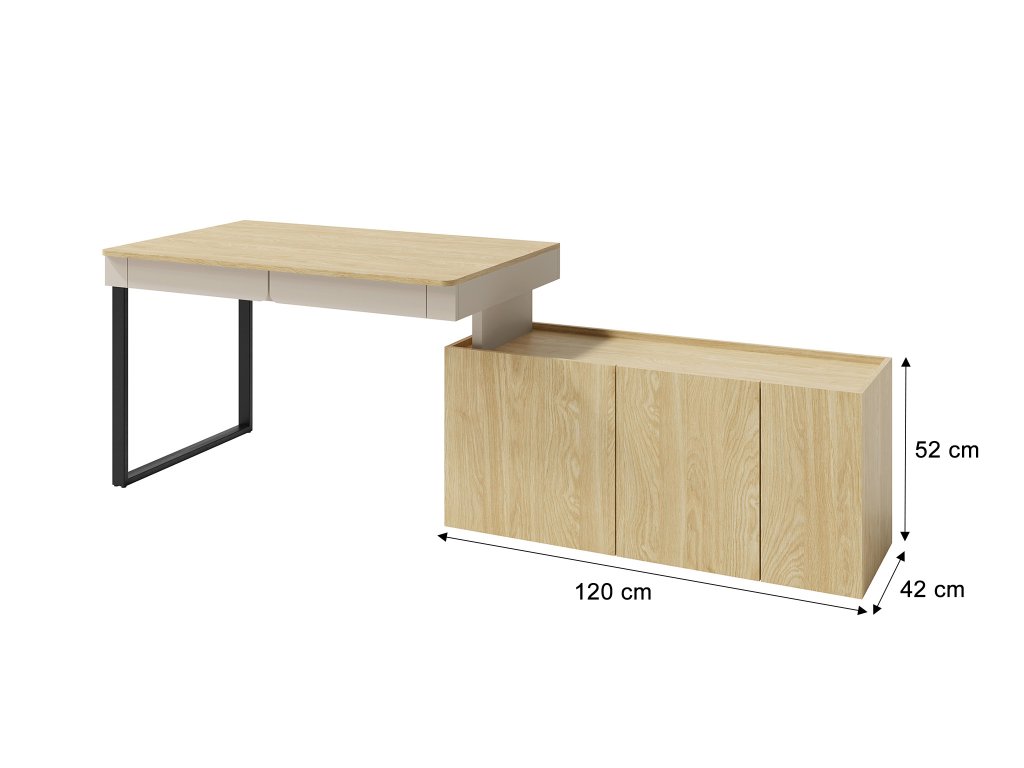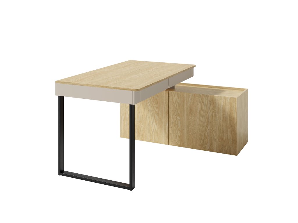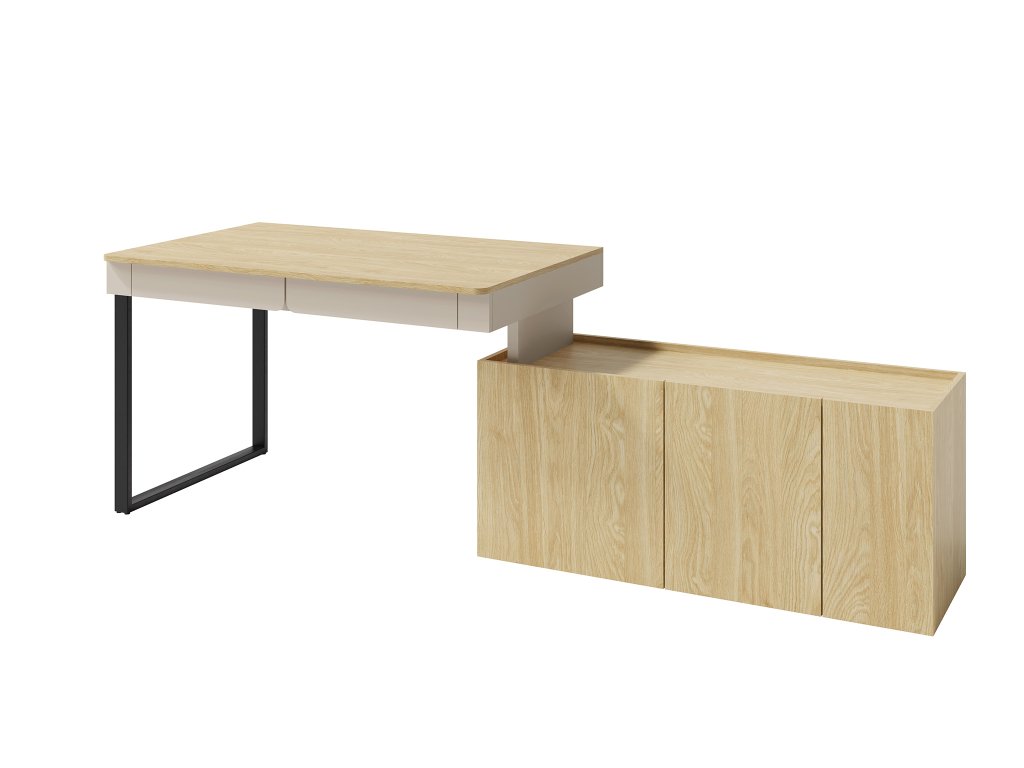 Béžový písací stôl s komodou je vyrobený z kvalitnej laminovanej dosky s hrúbkou 16 mm. Hrany sú zakončené odolnou ABS dyhou. Zásuvky a dvierka majú bezúchytové otváranie. Pracovný stôl s komodou máme v ponuke v dvoch farebných prevedeniach. Už si k písaciemu stolu stačí vybrať len pohodlnú kancelársku stoličku alebo si prisunúť jedálenskú stoličku a funkčné pracovné miesto je na svete.