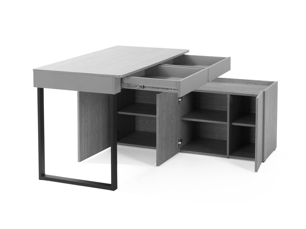 Písací stôl s komodou LUCA pre všetkých, ktorí hľadajú multifunkčný nábytok do detskej izby či domácej pracovne. Súčasťou svetlého pracovného stola je aj komoda s policami na odkladanie dokumentov, zakladačov a písacích potrieb. Veľkou výhodou tohto moderného pracovného stolíka je jeho flexibilita. Pri montovaní nábytku máte až štyri možnosti ako si stolík zmontovať tak, aby vám presne zapadol do priestoru, ktorý ste si naň vyhradili. V prvom rade je dôležité rozhodnúť sa, či ho chcete mať otočený na pravú alebo ľavú stranu. V druhom kroku sa rozhodujete, či chcete mať písací stôl s komodou zalomený do rohu alebo ho umiestnite popri stene, ako to vidíte na obrázku.