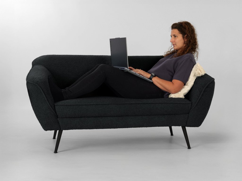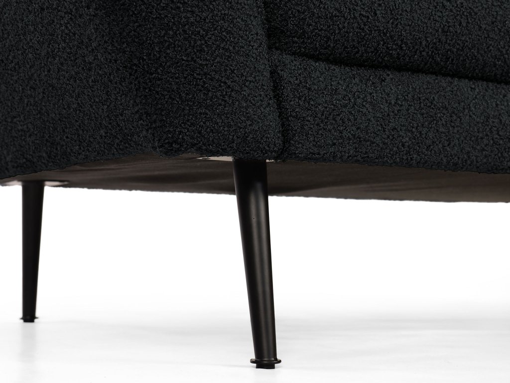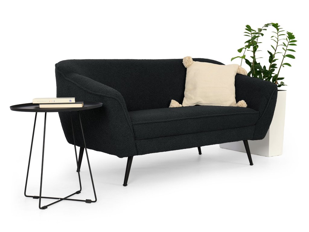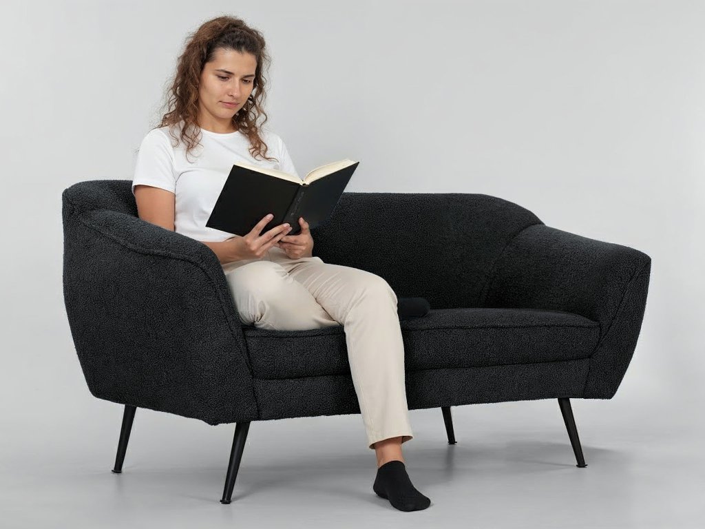 Spojenie nadčasového dizajnu, pohodlia a jemnej estetiky – to vystihuje dvojmiestnu čiernu pohovku Bowy. V tmavej, elegantnej farbe pôsobí noblesne a zároveň univerzálne, takže sa stane dominantou každého moderného interiéru. Jej čierne kovové nohy dodávajú stabilitu aj ľahkosť, zatiaľ čo čalúnenie z látky Now or Never v štruktúre bouclé ponúka jedinečný vizuálny aj hmatový zážitok. Mäkký povrch s jemnými slučkami pripomína kučeravú jahňaciu vlnu – je hrejivý, príjemný na dotyk a navodzuje pocit útulnosti. Vďaka vlnitým pružinám a penám vysokej hustoty poskytuje pohovka výnimočné pohodlie, ideálne na relax po náročnom dni.