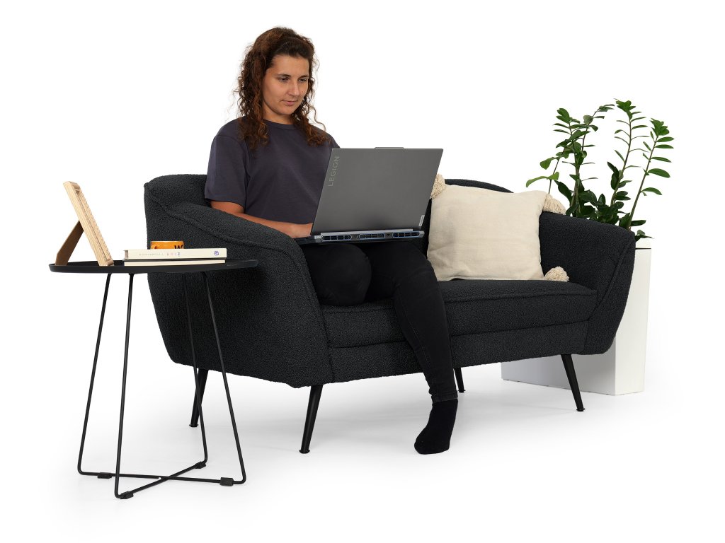 Každý detail modelu Bowy bol vytvorený s dôrazom na dlhodobú odolnosť a estetickú čistotu. Ergonomický tvar operadiel a sedacej časti podporuje prirodzené držanie tela, zatiaľ čo pevná konštrukcia zaručuje stabilitu. Látka Now or Never je vyrobená zo 100 % recyklovaných materiálov a pýši sa certifikátmi OEKO-TEX® a Global Recycled Standard, takže ide o ekologicky zodpovednú voľbu. Jej charakteristická slučková štruktúra dodáva povrchu hĺbku a textúru, ktorá v kombinácii s čiernym odtieňom pôsobí moderným, prémiovým dojmom.