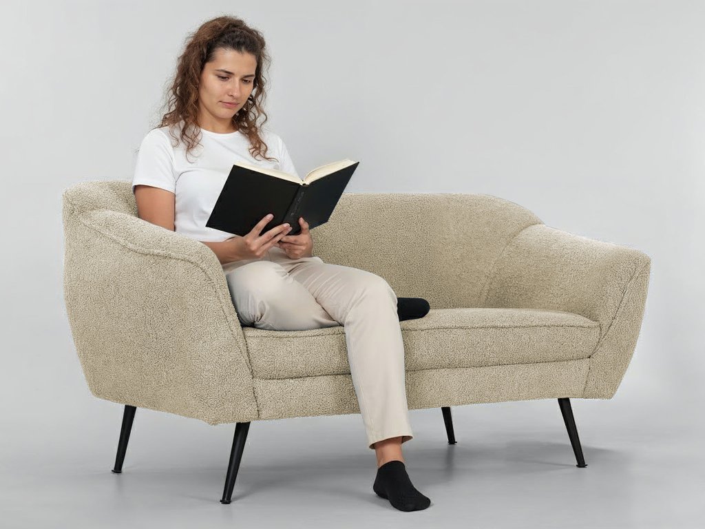 Niektoré kúsky nepotrebujú veľa, aby zaujali – pohovka Bowy v krémovej farbe je toho dôkazom. Jej čisté línie a decentná farebnosť pôsobia elegantne a nadčasovo, zatiaľ čo čierne kovové nohy dodávajú dizajnu moderný nádych. Povrch tvorí látka Now or Never s jemne slučkovanou bouclé štruktúrou, ktorá vyžaruje teplo a mäkkosť. Na dotyk pôsobí ako hebký vlnený úplet, vďaka čomu si na nej vychutnáte chvíle odpočinku s maximálnym komfortom.