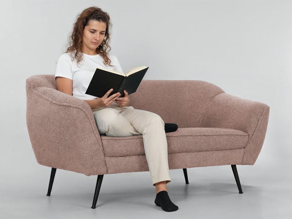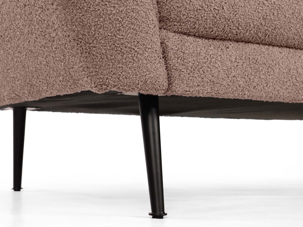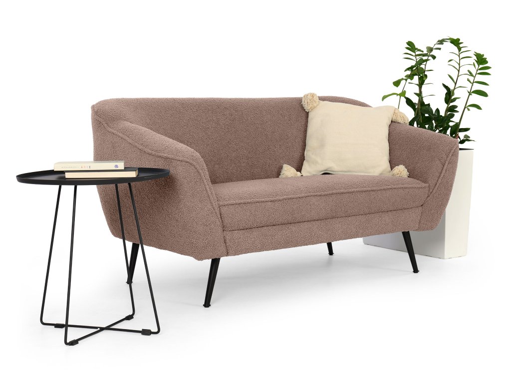 Ak hľadáte kúsok, ktorý do vášho domova vnesie jemnosť, ženský šarm a pohodlie, dvojmiestna pohovka Bowy v ružovej farbe je tou pravou voľbou. Na prvý pohľad zaujme elegantnou siluetou a čiernymi kovovými nohami, ktoré jej dodávajú moderný kontrast. Povrch pokrýva látka Now or Never s výraznou bouclé textúrou, pripomínajúcou hebký povrch ovčej vlny. Táto látka nie je len na pohľad atraktívna – jej mäkkosť, jemné slučky a hrejivý dotyk vás doslova pozvú k oddychu po dlhom dni.