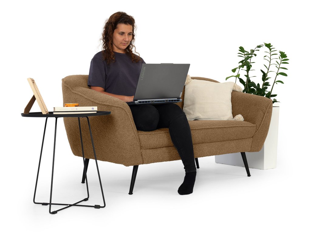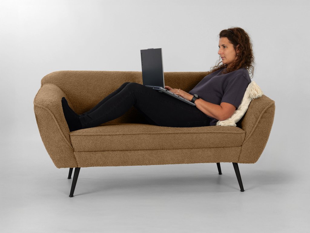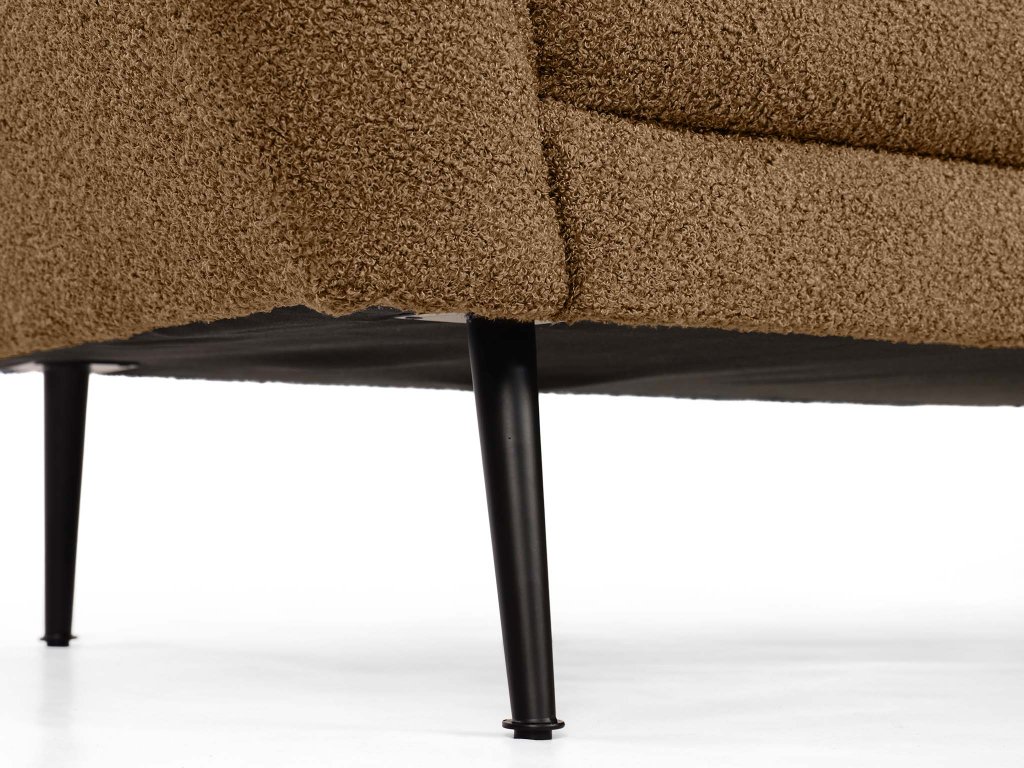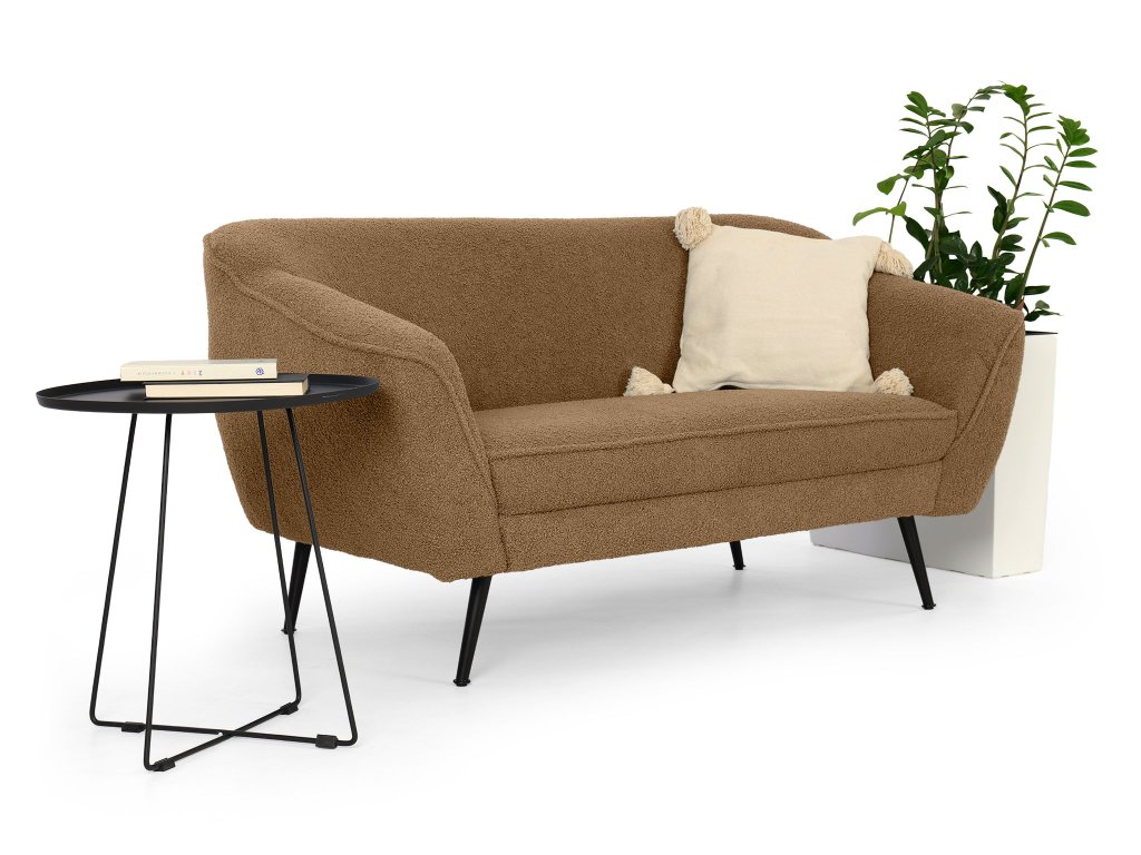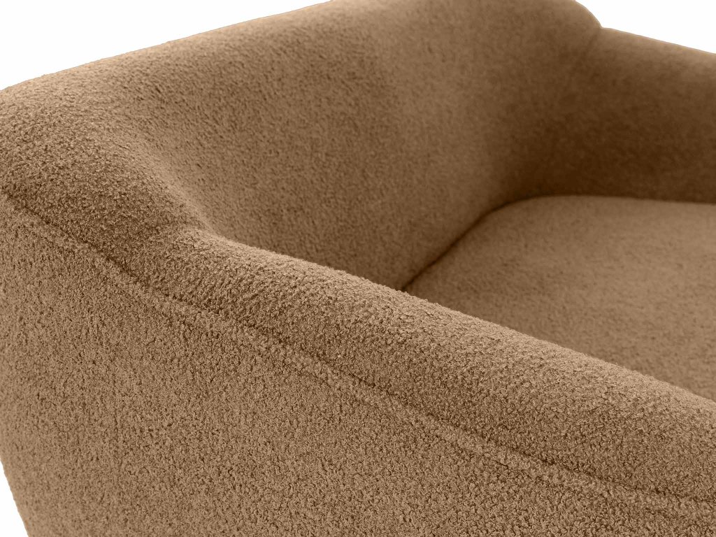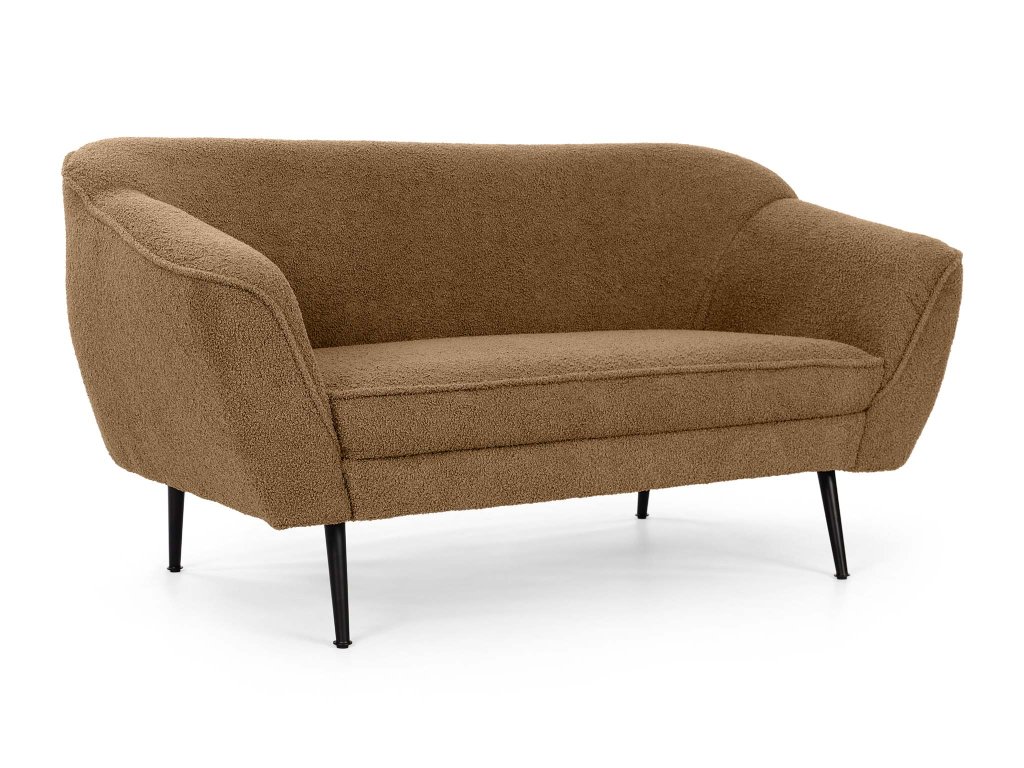 Teplý, zemitý tón škorice vnesie do vašej obývačky harmóniu a útulnosť. Dvojmiestna pohovka Bowy v tomto prevedení spája moderný štýl s pohodlím, ktoré si zamilujete už pri prvom posedení. Jemne zaoblené línie, čierne kovové nohy a čalúnenie z látky Now or Never v štruktúre bouclé tvoria spolu dokonale vyvážený celok. Typická slučková textúra látky pripomína mäkkú jahňaciu vlnu – je hrejivá, príjemná na dotyk a dodáva interiéru nádych luxusu i prirodzenej pohody.