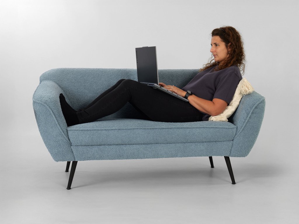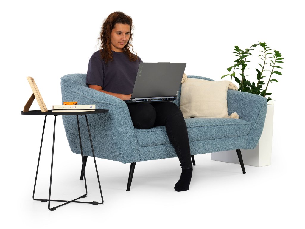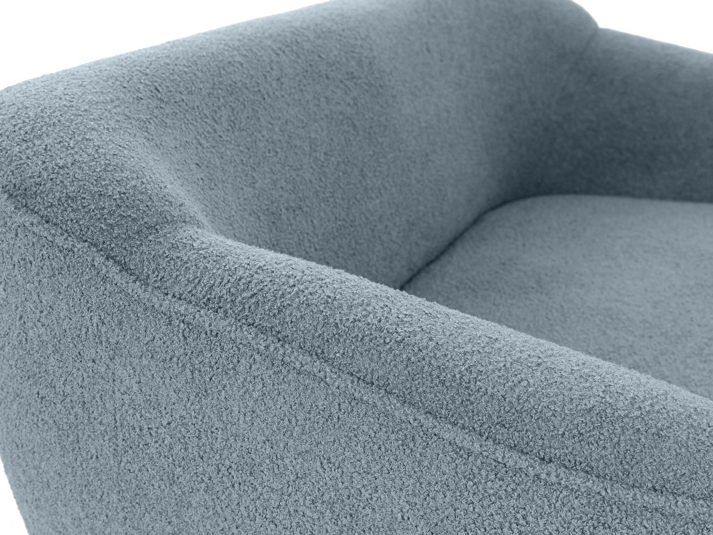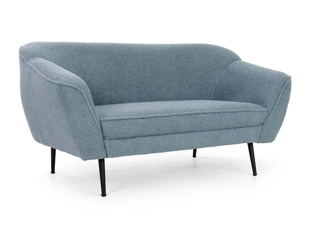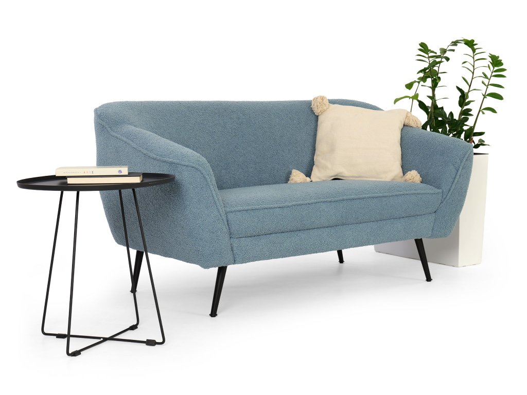 Vneste do svojho interiéru závan pokoja a jemnej elegancie s dvojmiestnou pohovkou Bowy v svetlomodrom prevedení. Táto farba pôsobí upokojujúco a opticky rozjasní priestor, vďaka čomu je ideálna do moderných aj škandinávsky ladených obývačiek. Pohovka stojí na štíhlych čiernych kovových nohách, ktoré jej dodávajú ľahkosť a moderný charakter. Čalúnenie z látky Now or Never v štruktúre bouclé je mäkké, hrejivé a príjemné na dotyk – pripomína kučeravú jahňaciu vlnu, ktorá okamžite navodí pocit pohodlia a domácej pohody.
