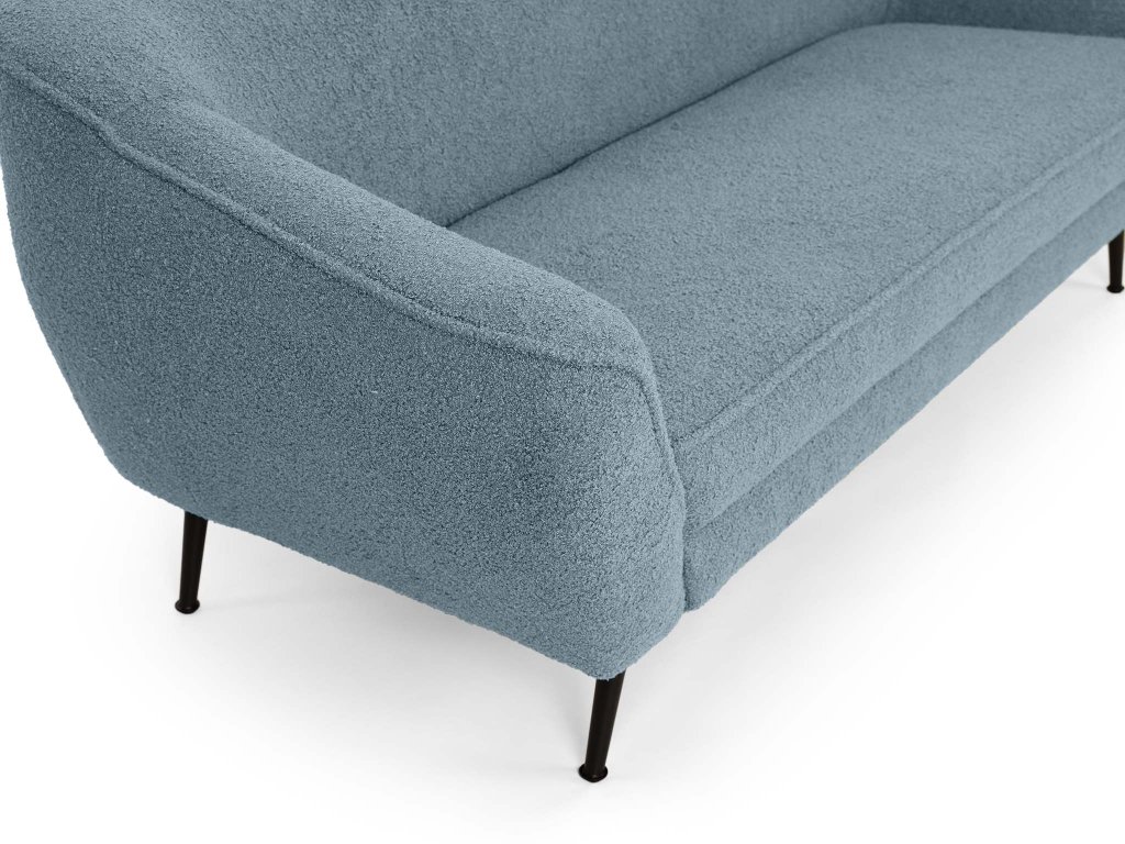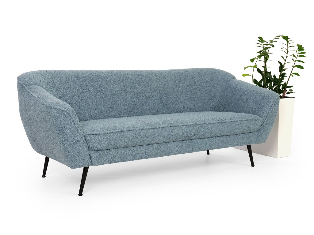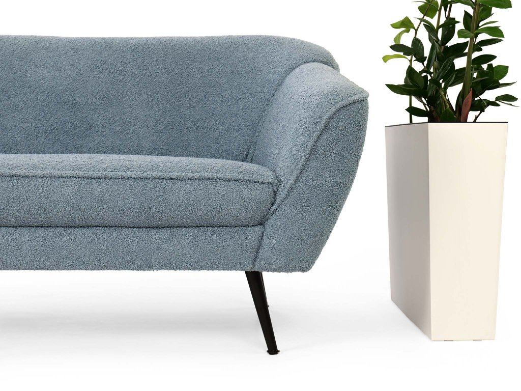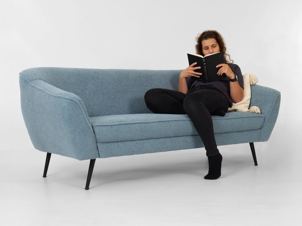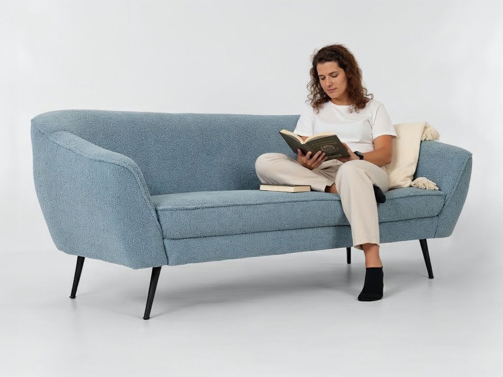 Nechajte do svojej obývačky vstúpiť harmóniu škandinávskeho dizajnu so svetlomodrou trojmiestnou pohovkou Bowy III. Tento kus nábytku v sebe spája modernú líniu s neprekonateľným komfortom, pričom pôsobí sviežo a útulne zároveň. Svetlomodrá buklé látka Now or Never – aktuálny trend v interiérovom dizajne – dodáva pohovke mimoriadne jemný, no štruktúrovaný povrch. Decentné, ale pevné čierne kovové nohy nielenže vytvárajú elegantný kontrast k svetlej farbe. Vysoké nožičky uľahčujú čistenie podlahy, aj keď použijete robotický vysávač.