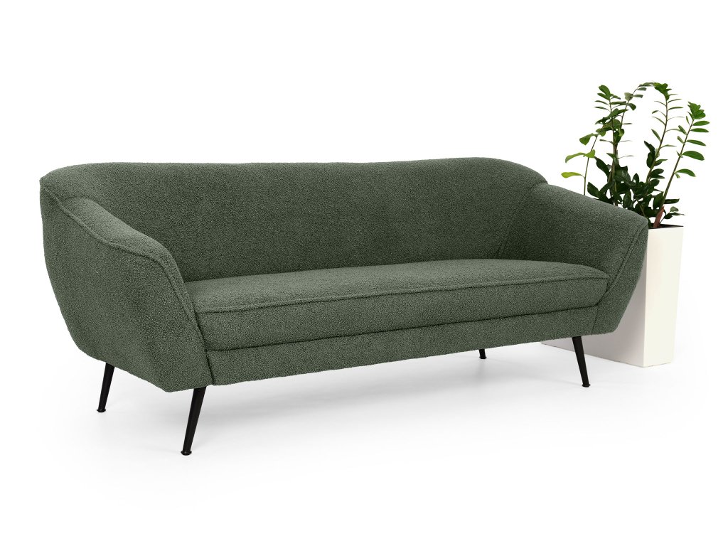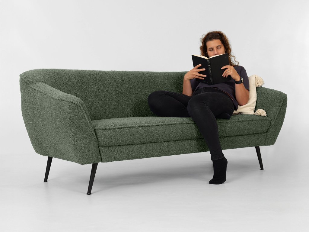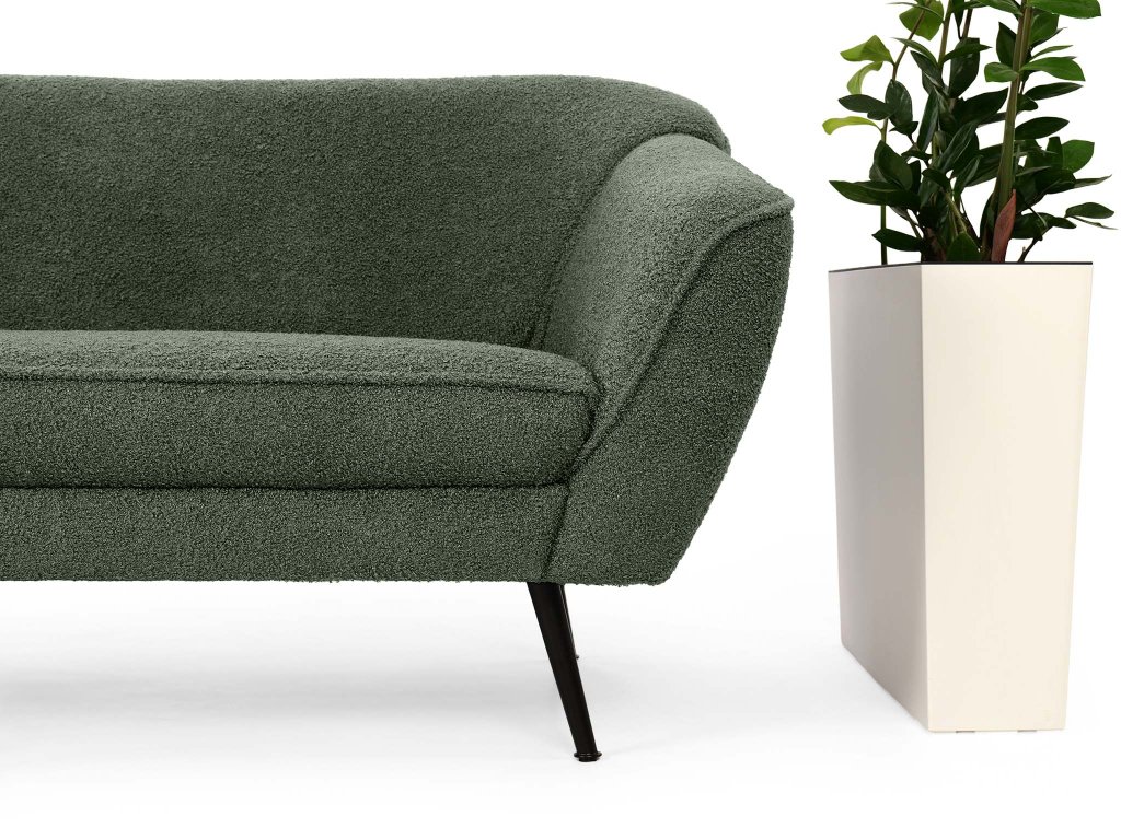 Vneste do svojho interiéru sviežosť a pokoj s trojmiestnou pohovkou Bowy III v elegantnom zelenom prevedení. Tento nábytok stelesňuje čisté a útulné línie škandinávskeho štýlu, ktoré sú synonymom nadčasovosti a šarmu. Zelená farba, ideálna pre vytvorenie relaxačnej atmosféry, je zvýraznená trendovou buklé látkou Now or Never. Táto štruktúrovaná, na dotyk príjemná látka dodáva pohovke moderný rozmer a hĺbku. Celkový dizajn dokonale dopĺňajú decentné čierne kovové nohy, ktoré poskytujú nábytku pevnú oporu a zároveň vytvárajú štýlový, zemitý kontrast k zelenému čalúneniu.