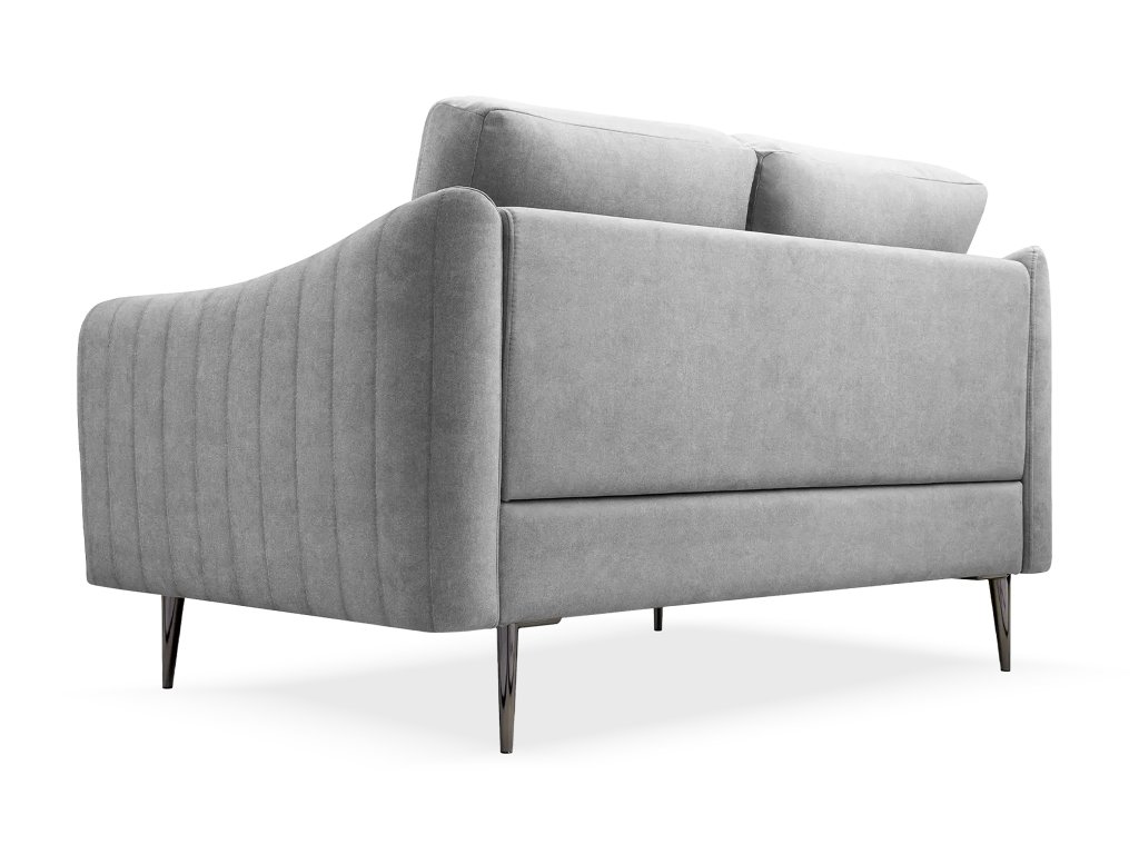 Modré čalúnenie dodáva interiéru svieži nádych a ľahko sa kombinuje s rôznymi štýlmi zariadenia. Zladiť ju môžete aj s kreslom z tej istej kolekcie. Cori II je ideálnym doplnkom pre tých, ktorí hľadajú funkčný a vkusný kúsok s nadčasovým charakterom. Je vyrobená z kvalitných materiálov – jej rám tvorí masívne drevo v kombinácii s pevnou HDF doskou, čo zaručuje stabilitu a dlhú životnosť. Sedacia plocha je vyplnená vysoko elastickou penou T30 (hrúbka 3 cm), ktorá poskytuje vynikajúce pohodlie pri sedení, zatiaľ čo delené sedadlo a vertikálne prešívanie dodávajú pohovke vizuálnu ľahkosť a štýl. Pohovka je čalúnená luxusnou zamatovou látkou Cloud 81 v sivej farbe – je jemná, odolná voči žmolkovaniu a príjemná na dotyk. Kovové nohy v minimalistickom štýle dodávajú pohovke moderný vzhľad a výbornú stabilitu.
