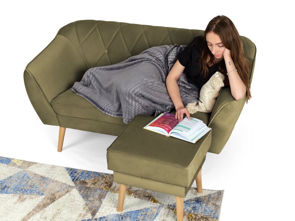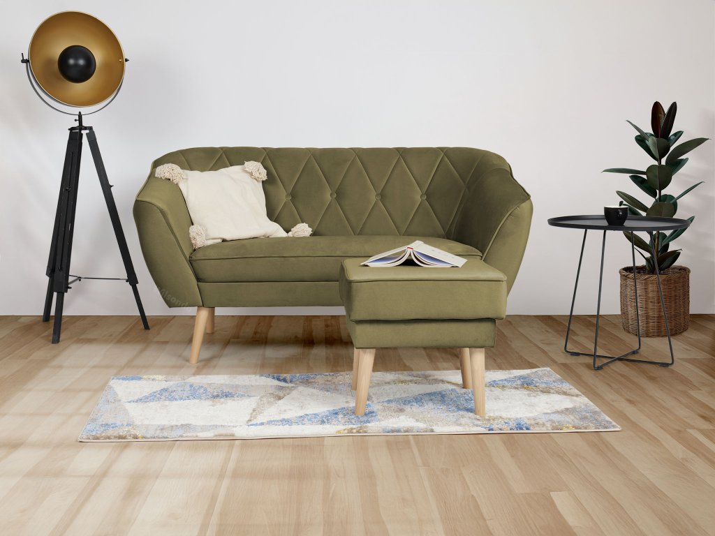 Doprajte si kvalitný relax s výhodnou sadou Deana, ktorá v sebe spája pohodlie, jemnosť zamatového čalúnenia a moderný škandinávsky vzhľad. Dvojmiestna pohovka a štýlový taburet vytvárajú dokonale zladený celok, ktorý nielen zútulní váš interiér, ale zároveň poskytne maximálny komfort pre chvíle oddychu. Čalúnenie v odtieni olivovej zelenej je vyhotovené z látky Velur Royal – jemne lesklej, hebkej na dotyk a zároveň odolnej voči žmolkovaniu. Vďaka tomu si nábytok zachová svoj elegantný vzhľad aj pri každodennom používaní. Pohodlné sedenie zabezpečuje výplň z kvalitnej peny T30, zatiaľ čo operadlo s jemným vertikálnym prešívaním je vystužené penou T25.
