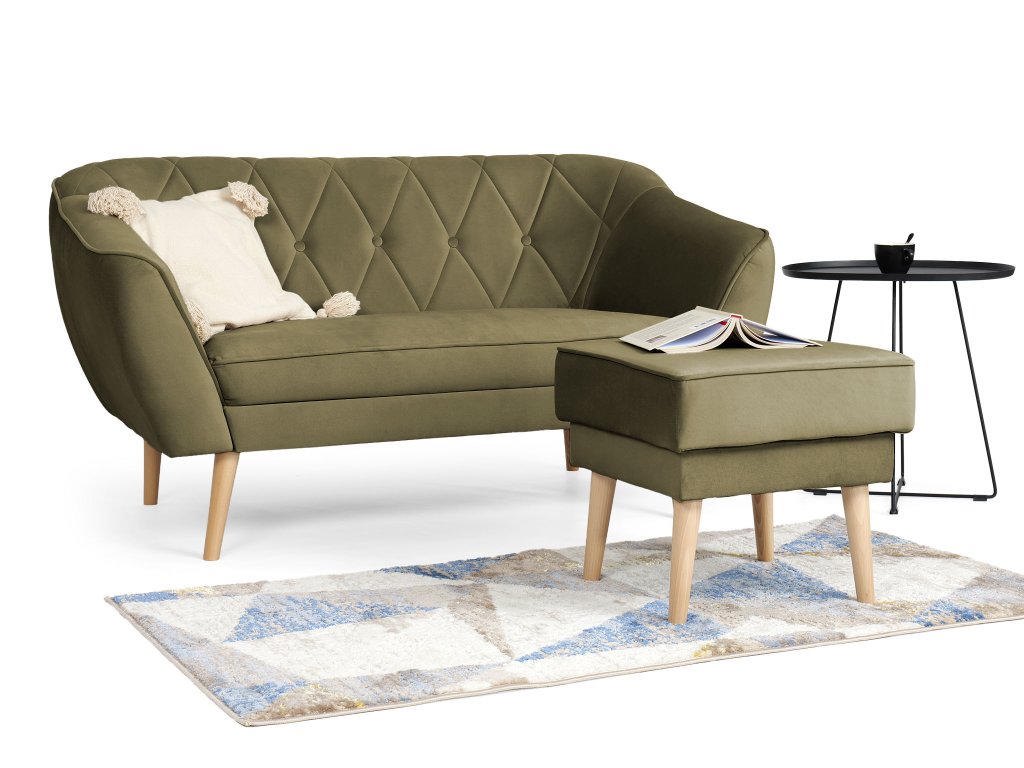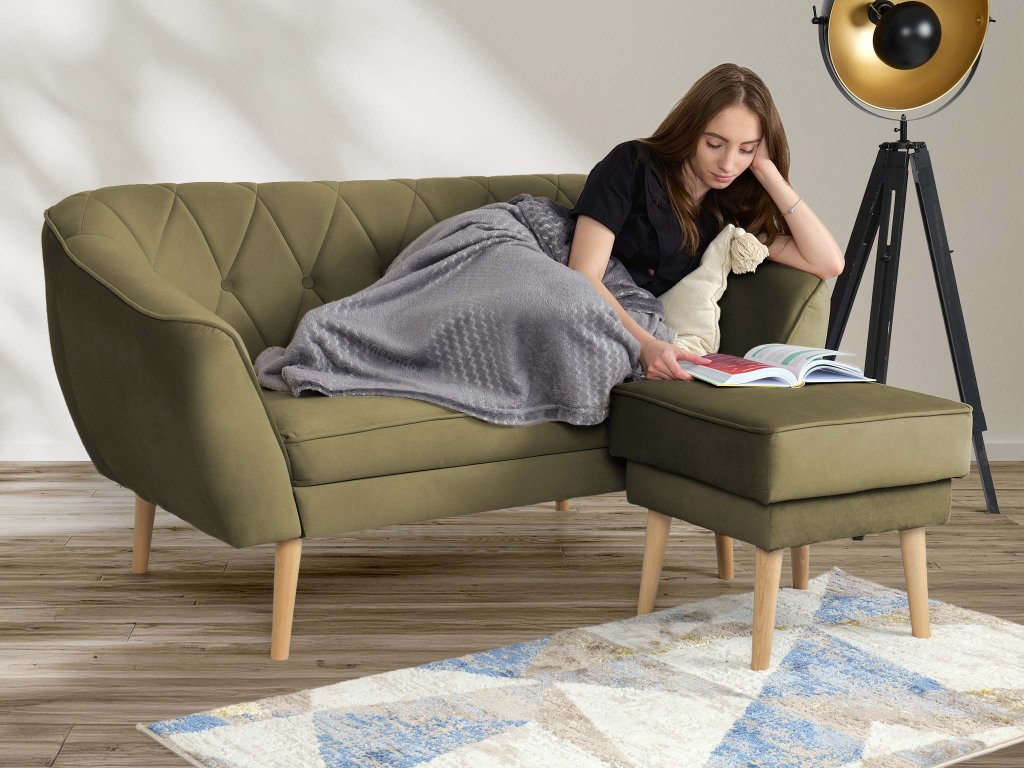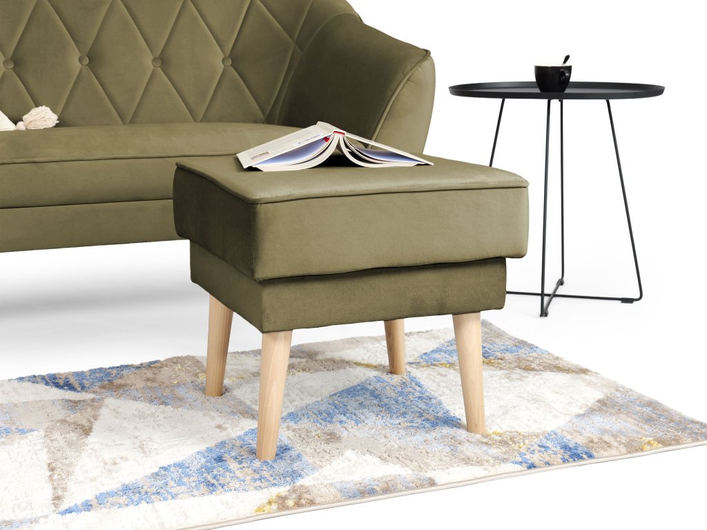 Taburet slúži ako praktický doplnok na vyloženie nôh, ale využijete ho aj ako náhradné sedenie či odkladací prvok. Drevené nožičky v prírodnom dekore celú súpravu odľahčujú a dodávajú jej vzdušný charakter. Olivová zelená pôsobí upokojujúco a elegantne, perfektne zapadne do prírodných i moderných interiérov. Táto farebná varianta je ideálna pre každého, kto chce do svojho domova vniesť kúsok sviežosti a nadčasového štýlu.
