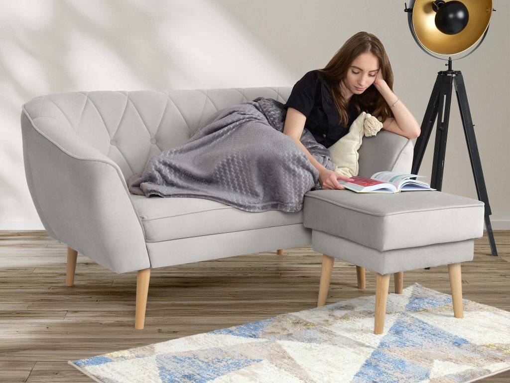Pohovka Deana II s taburetom - sivá