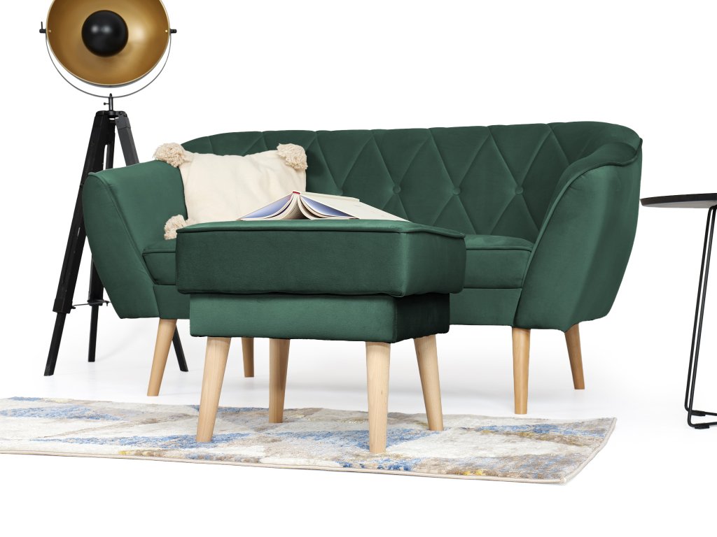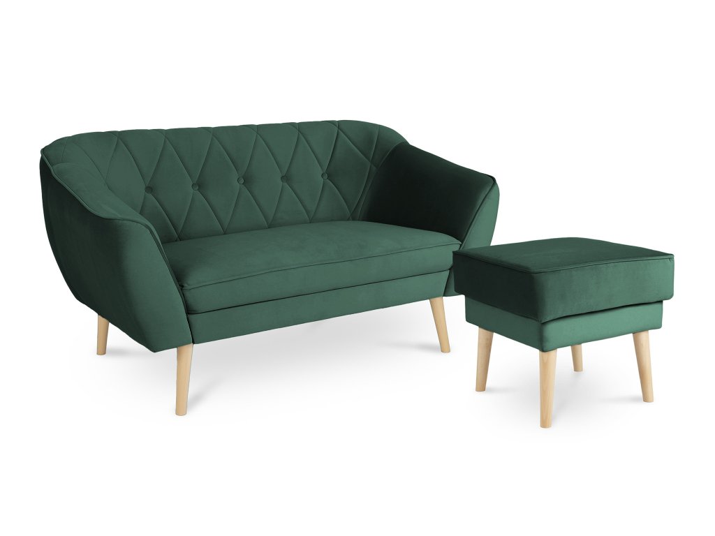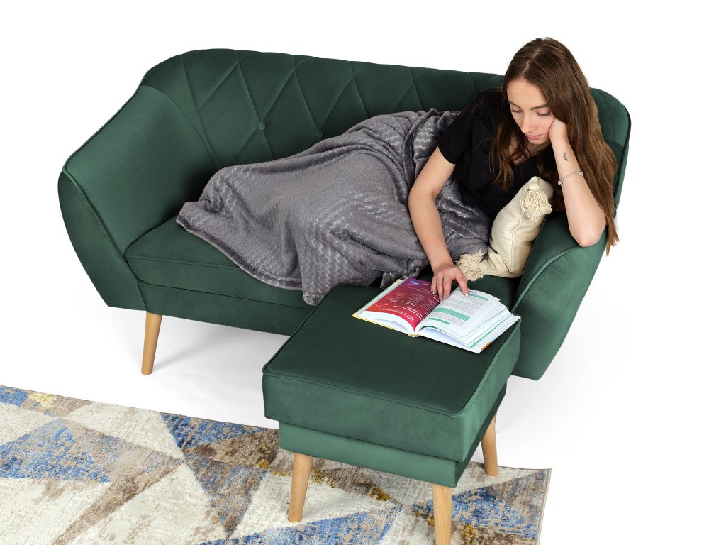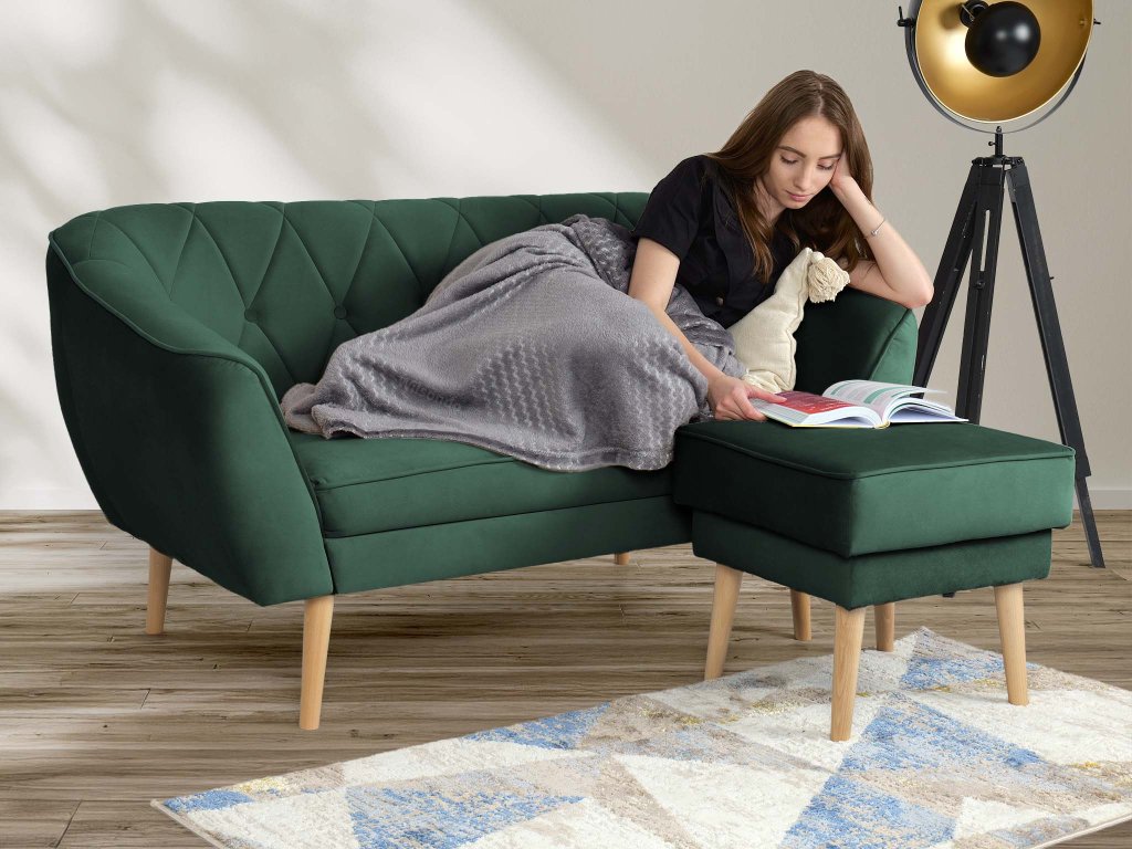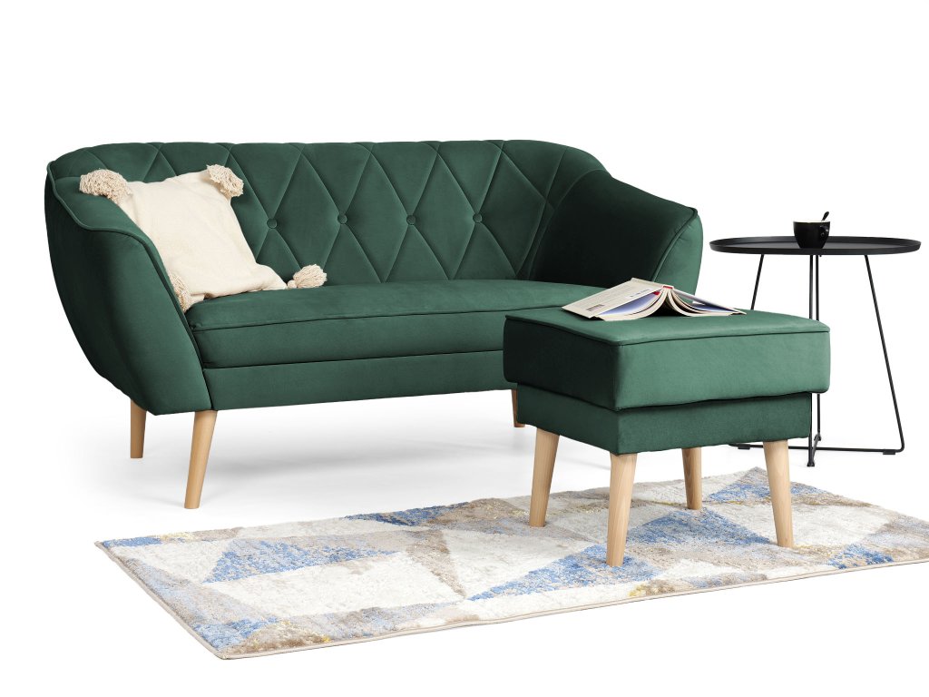 Výhodná sada pohovky Deana II a taburetu v smaragdovo zelenej farbe prinesie do vášho interiéru svieži vizuálny akcent aj pohodlie na každý deň. Kompaktná pohovka s dvojmiestnym sedením je ideálnou voľbou do obývačky, pracovne, predsiene či spálne. Sedacia časť široká 100 cm poskytuje dostatok miesta pre dve osoby, výplň tvorí kombinácia pien T25 a T30, ktoré zabezpečujú mäkkosť aj tvarovú stálosť. Mierne zaoblené operadlo s dekoratívnym prešívaním poskytuje príjemnú oporu chrbta a pôsobí elegantne.
