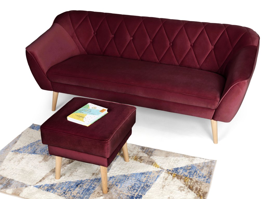Trojmiestná pohovka Deana s doplnkovým taburetom ponúka praktické riešenie do kždej miestnosti. Svojím bordovým poťahom z látky Royal oživí priestor a pritom si zachová vkusný, moderný vzhľad. Táto textília je príjemná na dotyk, jemná a zároveň výnimočne odolná voči každodennému používaniu. Naviac sa jednoducho udržiava a farba nevybledne ani po rokoch. Pohodlie pri sedení zabezpečuje kombinácia dvoch penových materiálov. Pevnejšia pena T30 v sedacej časti poskytuje výbornú stabilitu a dlhú životnosť, zatiaľ čo operadlá s výplňou T25 ponúkajú mäkšiu oporu pre chrbát. Stabilitu celej zostavy podporujú pevné drevené nožičky v prírodnom odtieni, ktoré zároveň podčiarkujú ľahkosť a elegantný charakter nábytku.