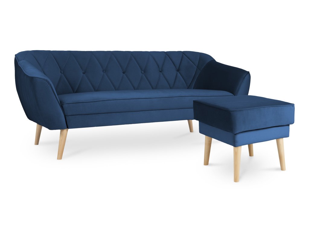 Trojmiestna pohovka Deana III spolu s taburetom prinesú do vášho obývacieho či pracovného prostredia spojenie funkčnosti a elegantného dizajnu. Modré čalúnenie z kvalitnej látky Royal vytvára dojem luxusu a zároveň poskytuje príjemný, jemný povrch, ktorý je zároveň veľmi odolný a ľahko sa čistí. Farba látky si zachováva sýtosť a sviežosť aj po dlhodobom používaní, čo z nej robí ideálnu voľbu pre každodenné používanie. Vnútorná konštrukcia pohovky kombinuje dve peny. Sedaciu časť tvorí pevnejšie penové jadro T30, ktoré zabezpečuje stabilitu a udržanie tvaru, zatiaľ čo operadlá sú vyplnené mäkšou penou T25, ktorá poskytuje pohodlnú oporu pre chrbát. Nábytok stojí na drevených nožičkách v prirodzenom odtieni, ktoré pridávajú stabilitu a zároveň dotvárajú moderný vzhľad celej súpravy. Sedacia súprava Deana z pohovky a taburetu je ideálna pre všetkých, ktorí si cenia štýlový nábytok, ktorý spája estetiku s praktickosťou a maximálnym komfortom.