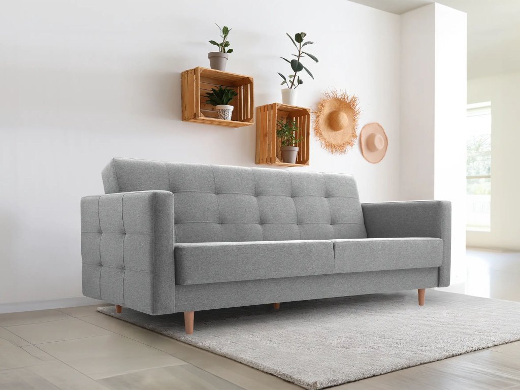 Godivo – svetlosivá pohovka, ktorá myslí na priestor aj pohodlie. Pohovka Godivo v elegantnej svetlosivej farbe je dokonalým riešením pre tých, ktorí chcú spojiť štýl a praktickosť v jednom kúsku nábytku. Vďaka dôvtipnému rozkladaciemu systému sa rýchlo zmení z útulného miesta na sedenie na komfortné lôžko – ideálne, keď príde návšteva alebo potrebujete viac priestoru na oddych. Je vyrobená z odolných a kvalitných materiálov, ktoré zvládnu každodenné používanie bez kompromisov. Stabilný rám z masívneho dreva a pevnej nábytkovej dosky poskytuje spoľahlivú oporu, zatiaľ čo sedacia časť s pružinami BONELL a penou T30 prináša výnimočné pohodlie. Svetlosivý odtieň dodáva pohovke moderný, čistý vzhľad, ktorý ľahko zapadne do akéhokoľvek interiéru – od minimalistickej obývačky po praktickú hosťovskú izbu.